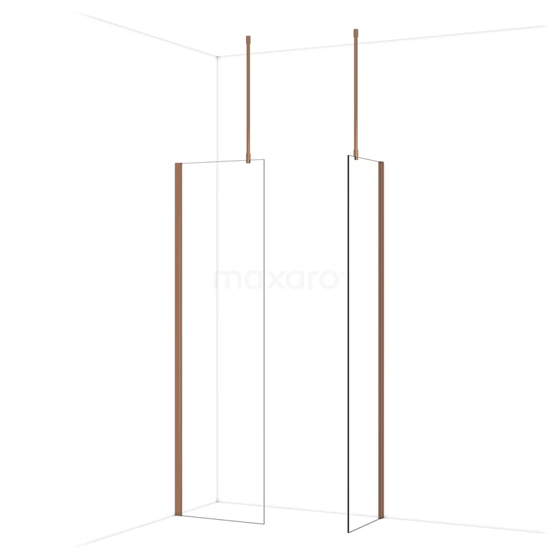 Diamond Inloopdouche | 60x50 cm Glanzend koper Helder glas 2 vaste wanden