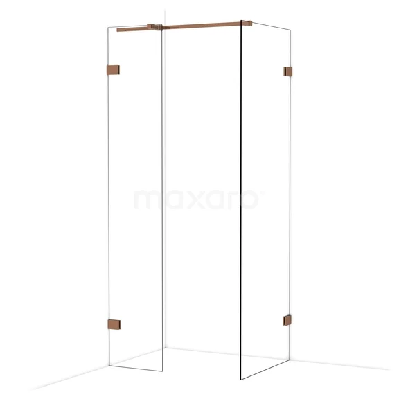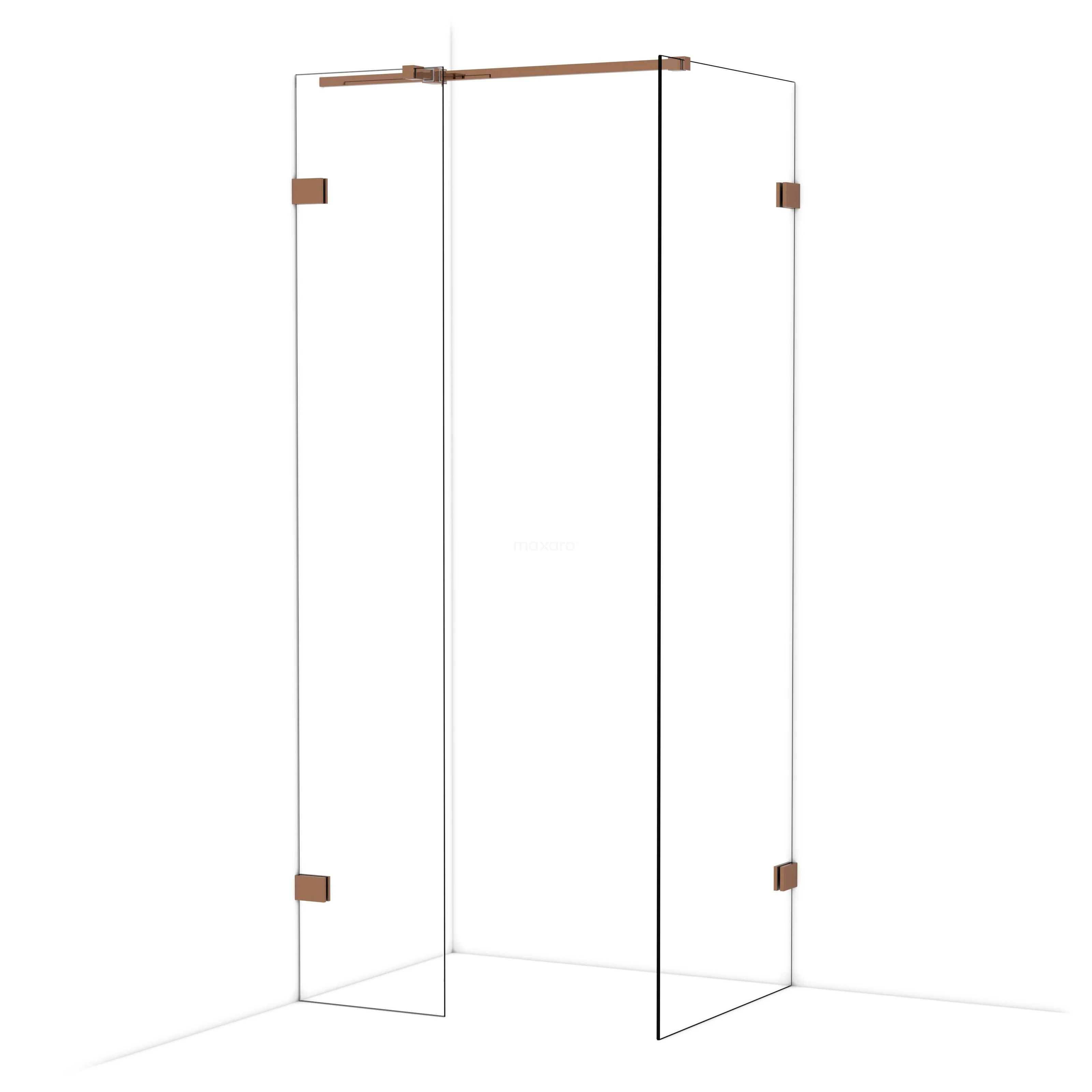 Diamond Inloopdouche | 70x40 cm Glanzend koper Helder glas 2 vaste wanden