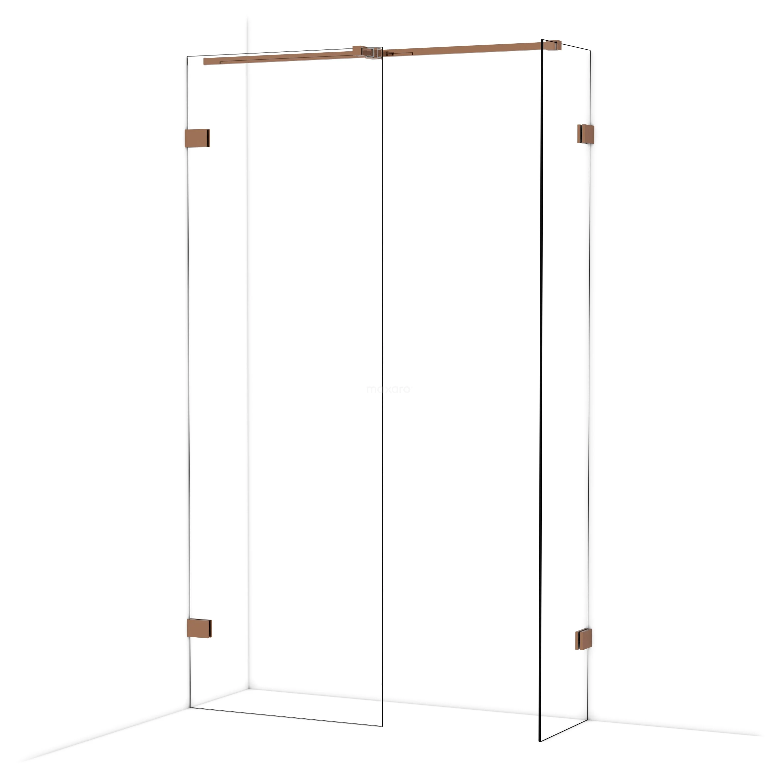 Diamond Inloopdouche | 70x40 cm Glanzend koper Helder glas 2 vaste wanden