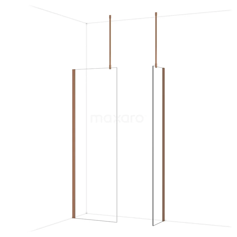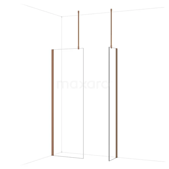 Diamond Inloopdouche | 70x40 cm Glanzend koper Helder glas 2 vaste wanden