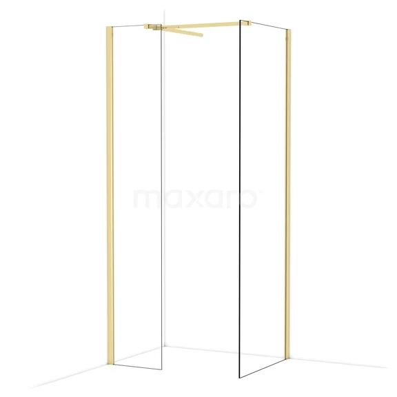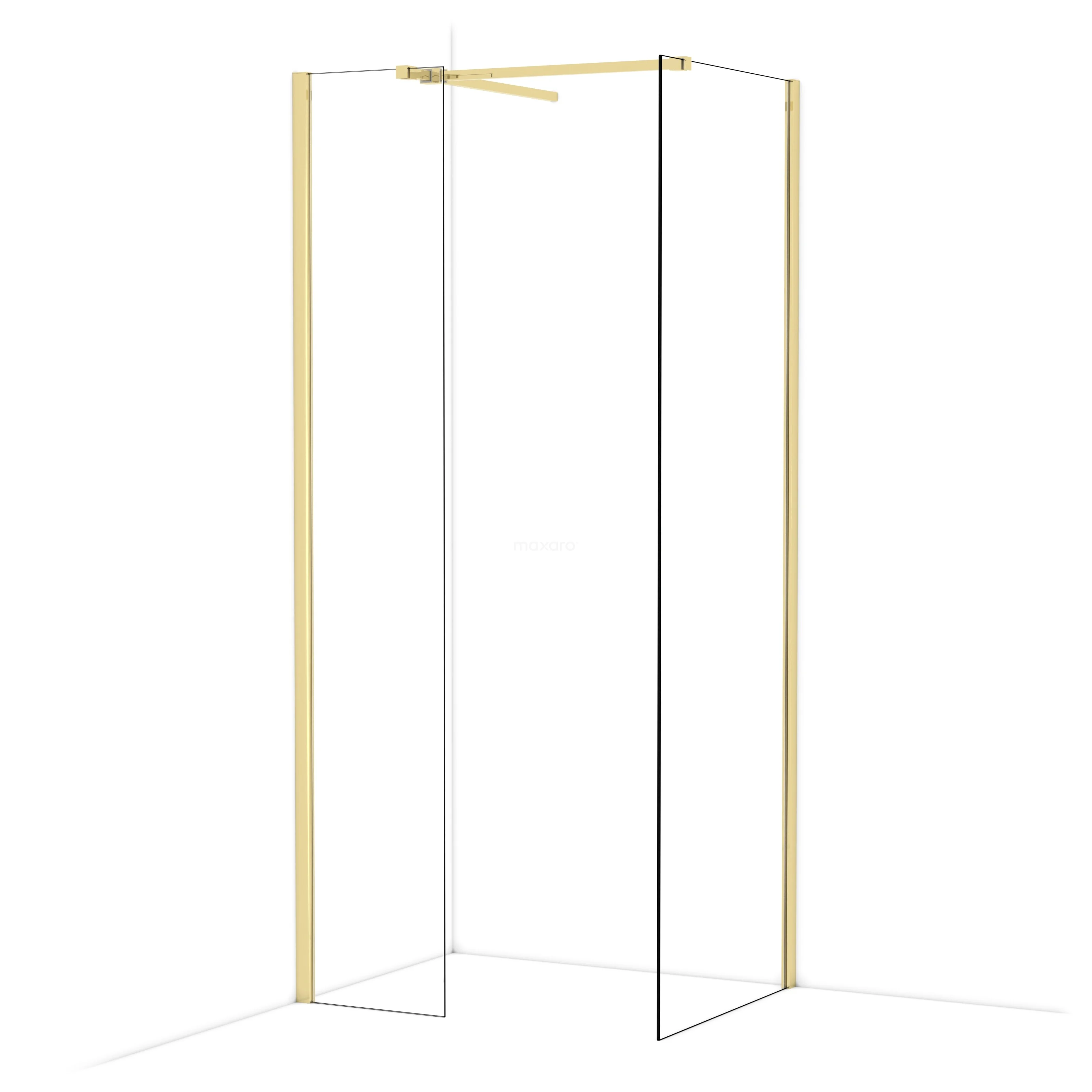 Diamond Inloopdouche | 70x40 cm Glanzend lichtgoud Helder glas 2 vaste wanden