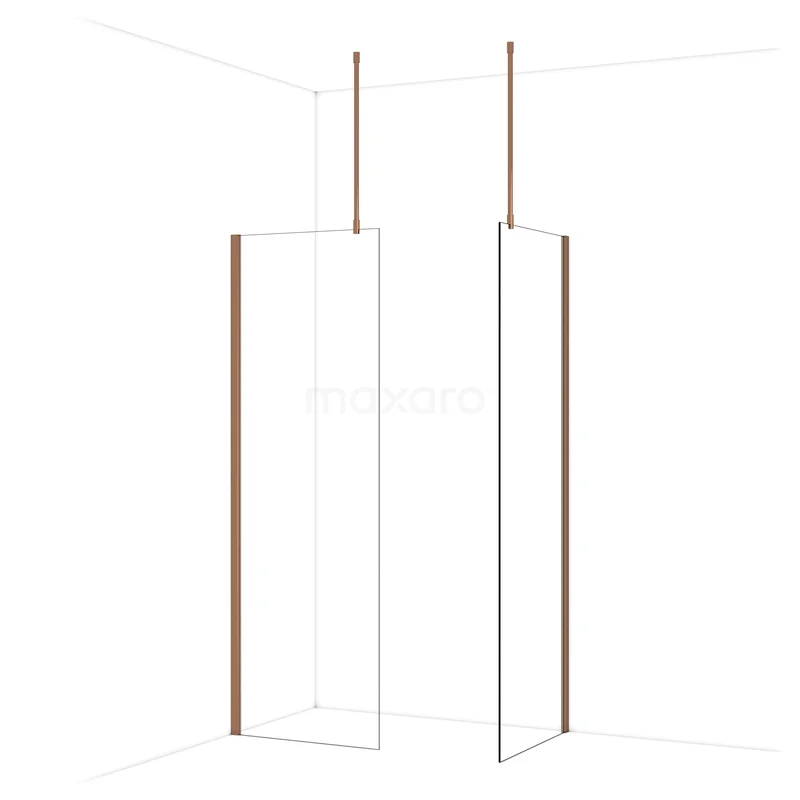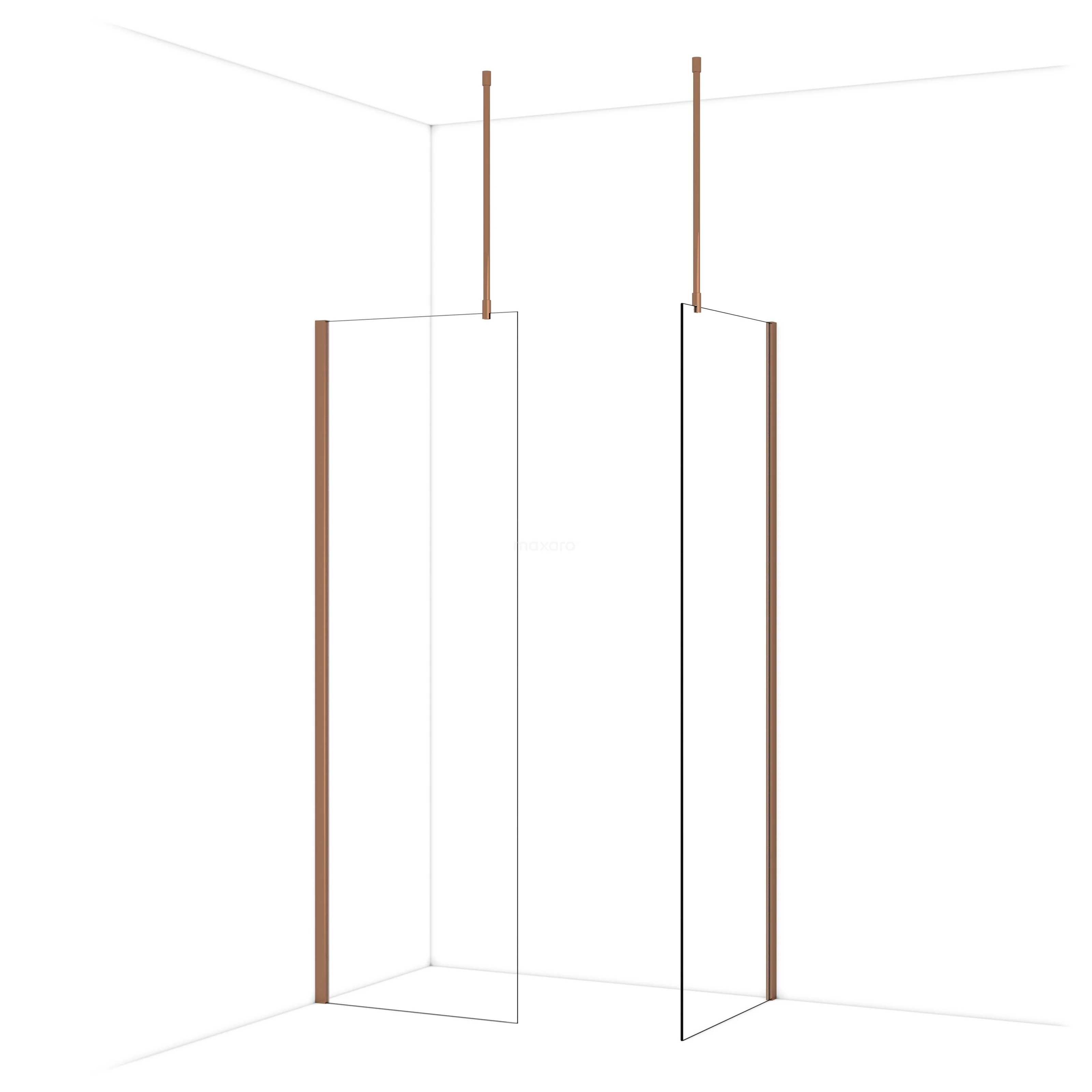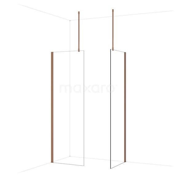 Diamond Inloopdouche | 70x70 cm Glanzend koper Helder glas 2 vaste wanden