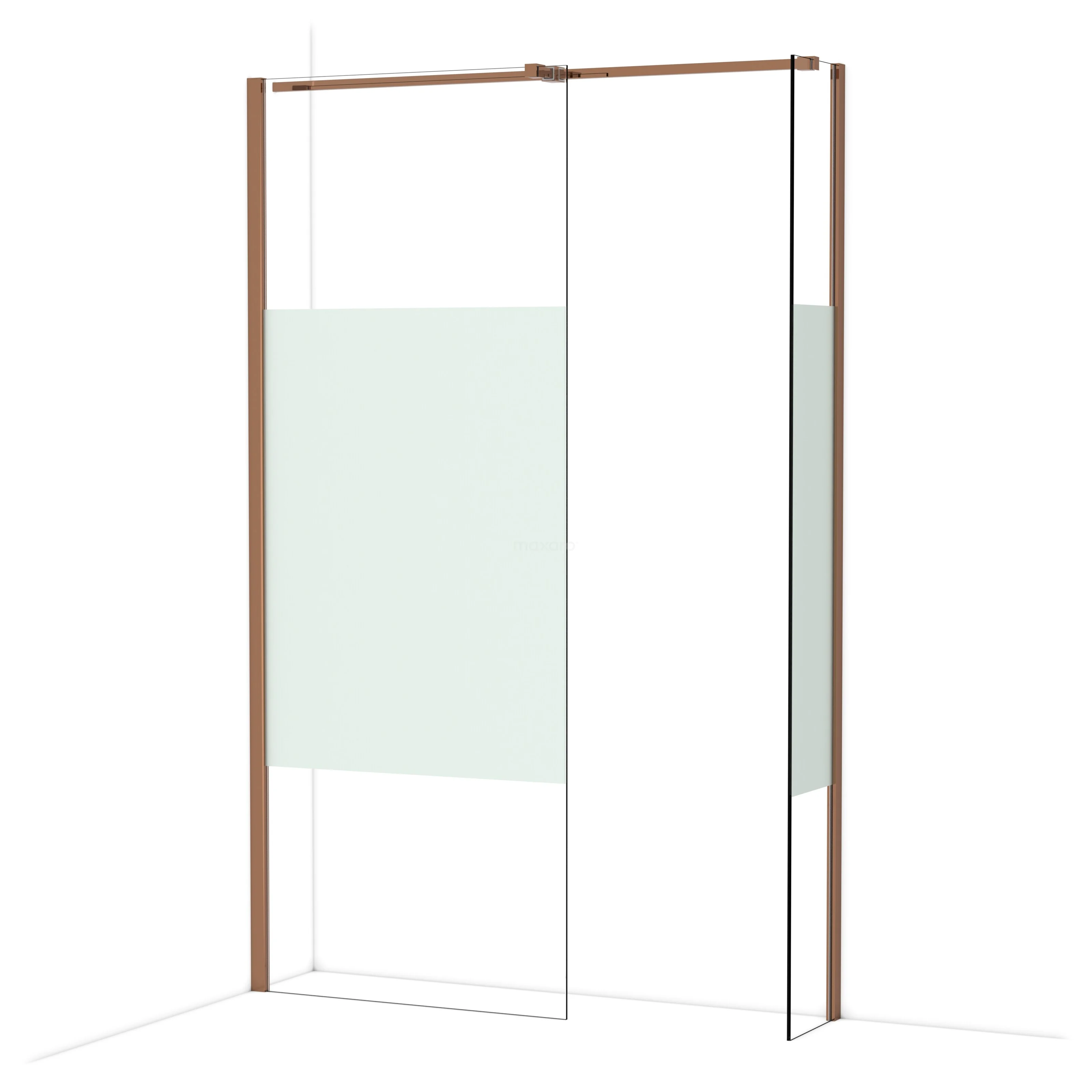 Diamond Inloopdouche | 80x30 cm Glanzend koper Helder met matte strook 2 vaste wanden