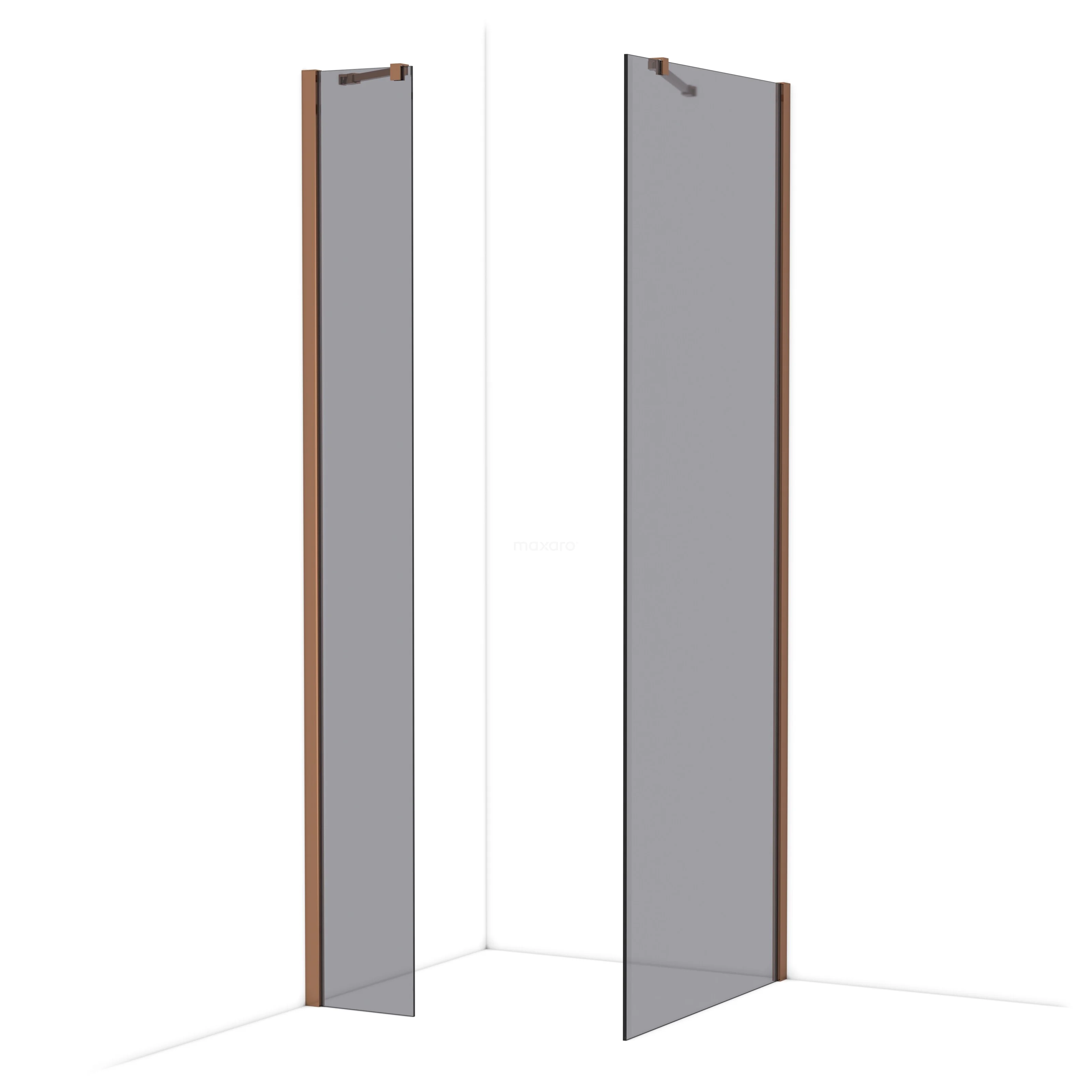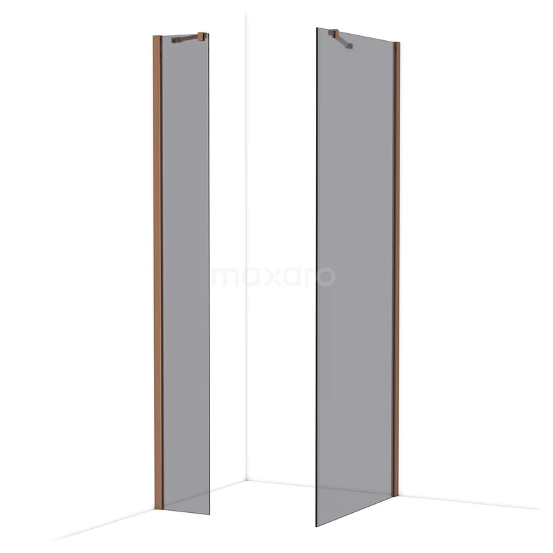 Diamond Inloopdouche | 80x30 cm Glanzend koper Rookglas 2 vaste wanden