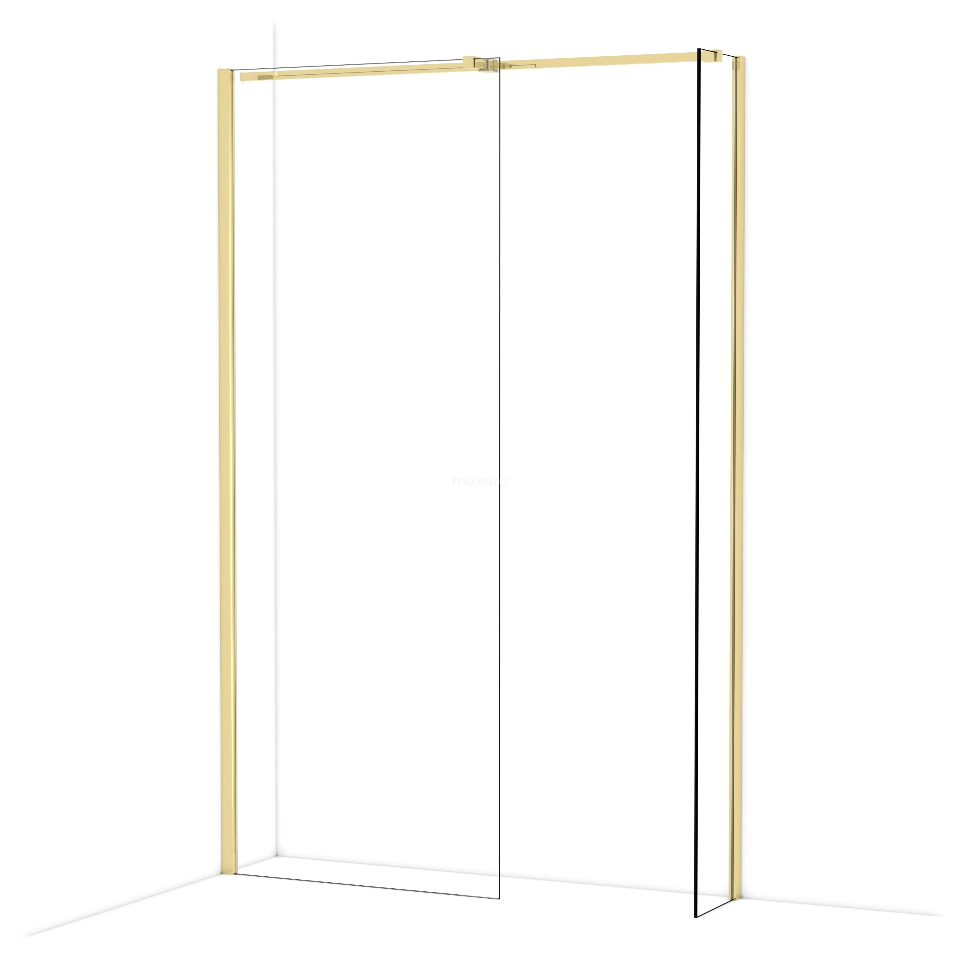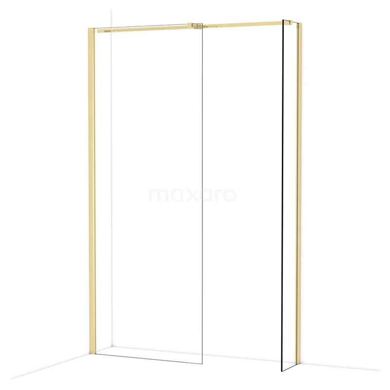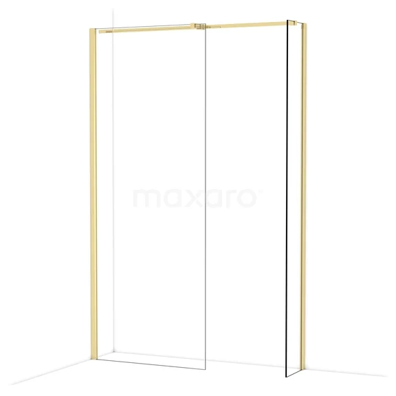 Diamond Inloopdouche | 80x30 cm Glanzend lichtgoud Helder glas 2 vaste wanden
