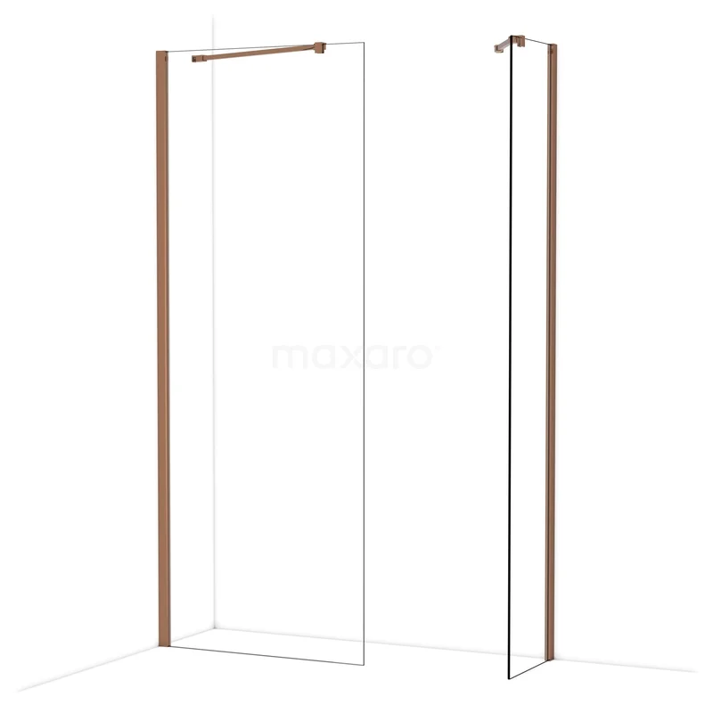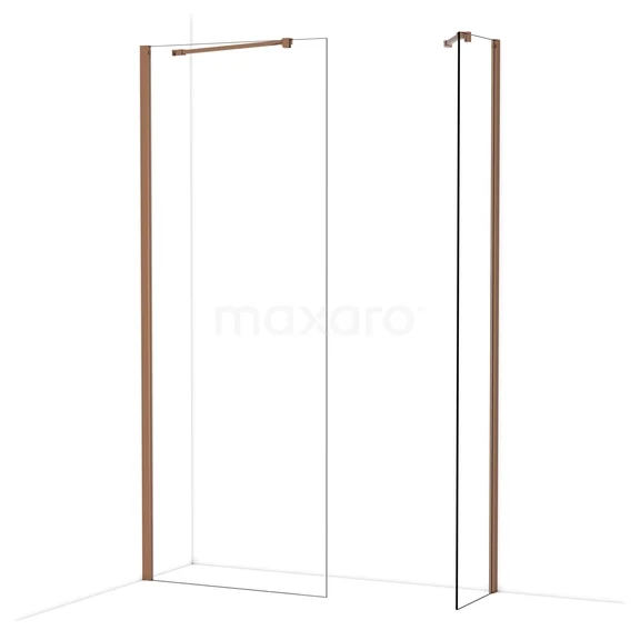 Diamond Inloopdouche | 80x40 cm Glanzend koper Helder glas 2 vaste wanden