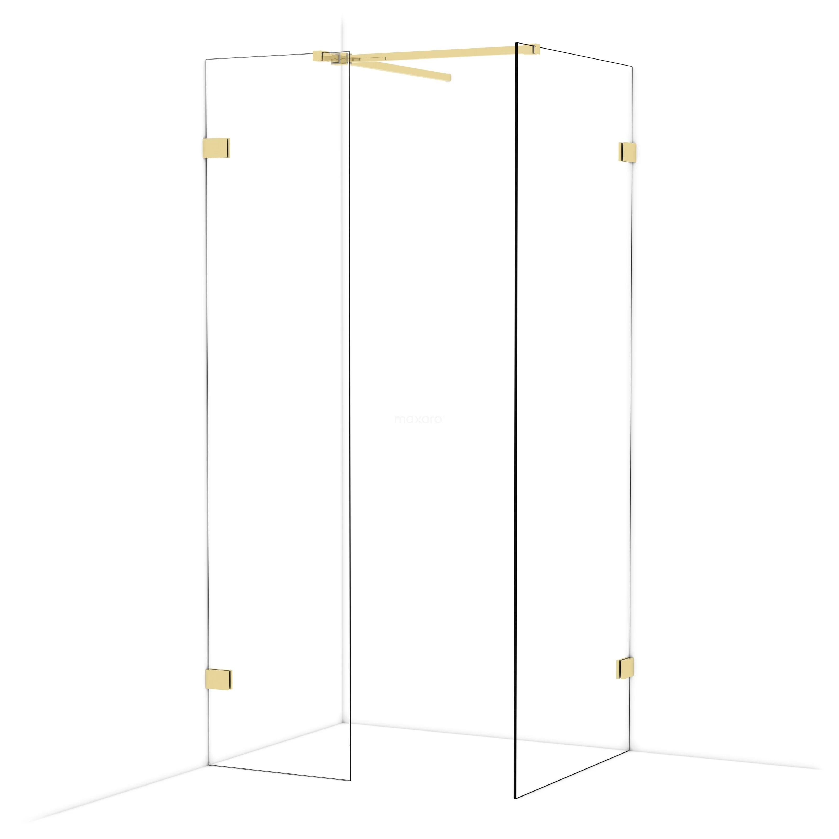 Diamond Inloopdouche | 80x50 cm Glanzend lichtgoud Helder glas 2 vaste wanden