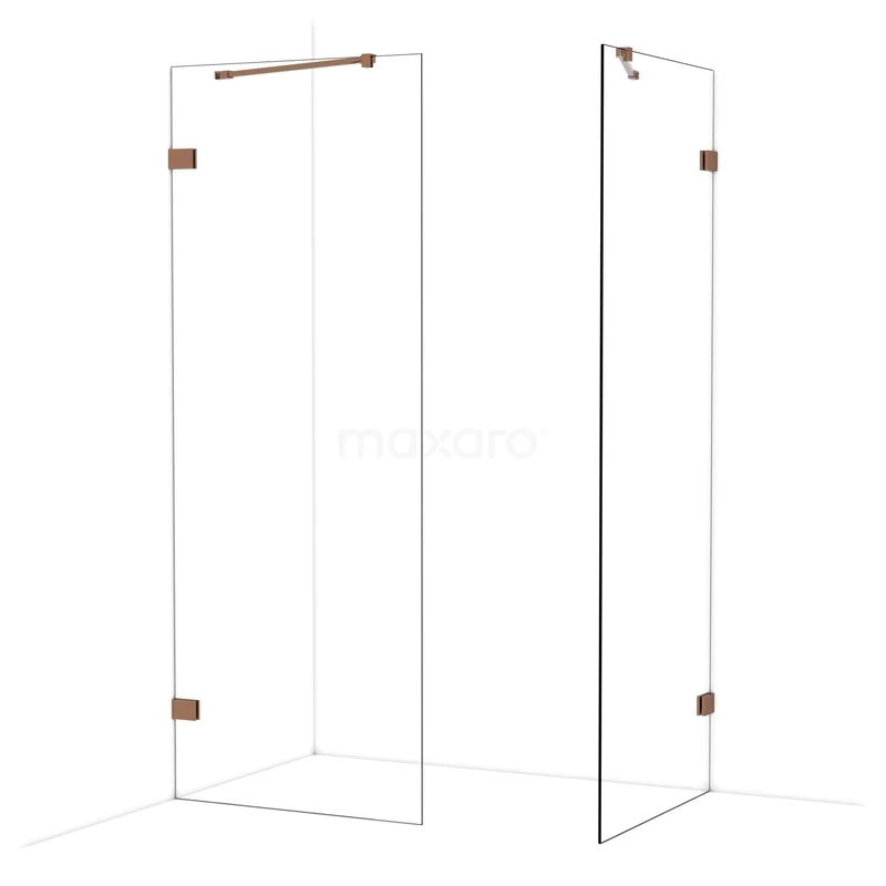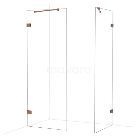 Diamond Inloopdouche | 80x80 cm Glanzend koper Helder glas 2 vaste wanden