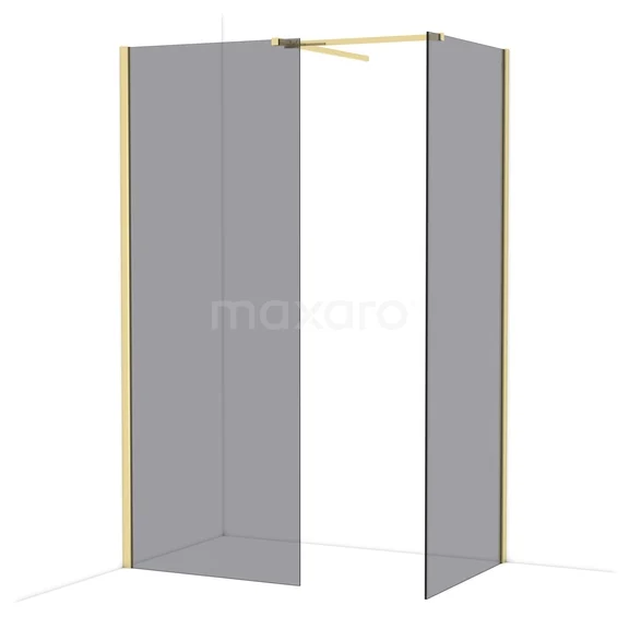 Diamond Inloopdouche | 80x80 cm Glanzend lichtgoud Rookglas 2 vaste wanden
