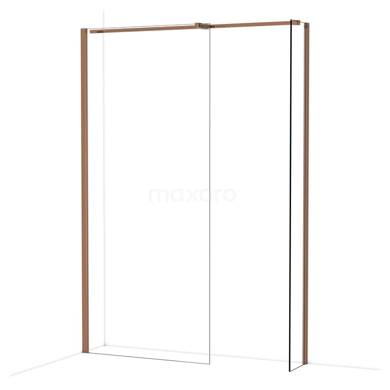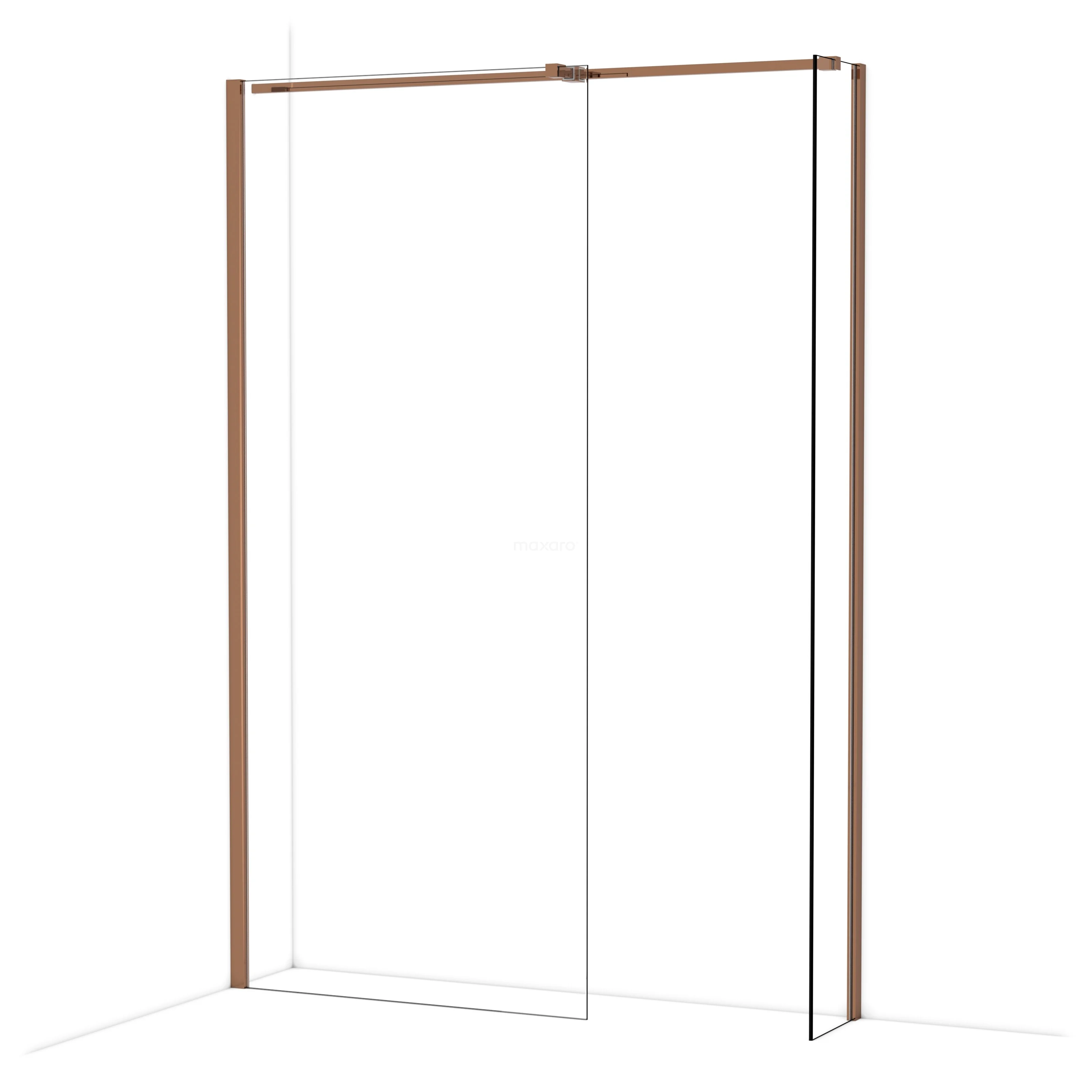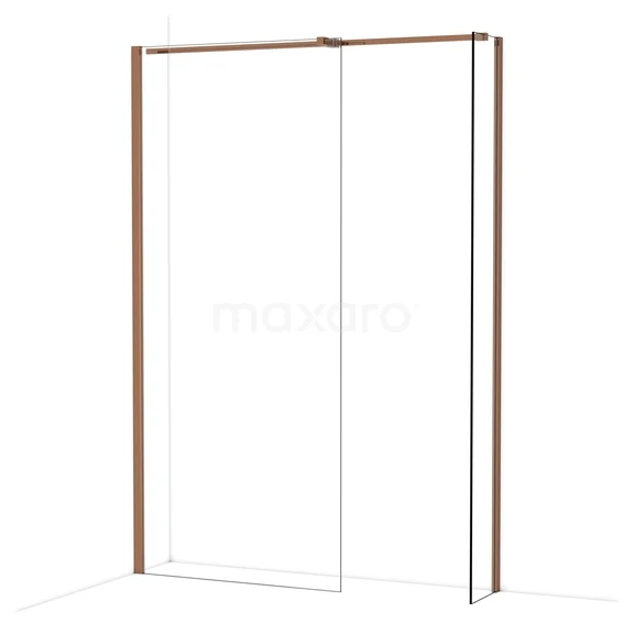 Diamond Inloopdouche | 90x30 cm Glanzend koper Helder glas 2 vaste wanden