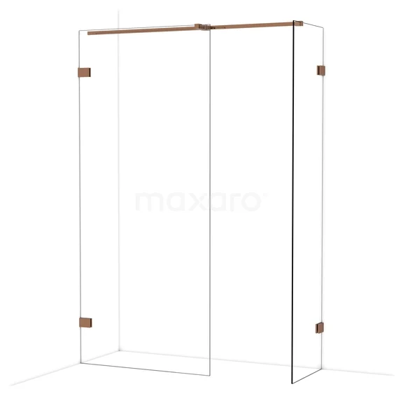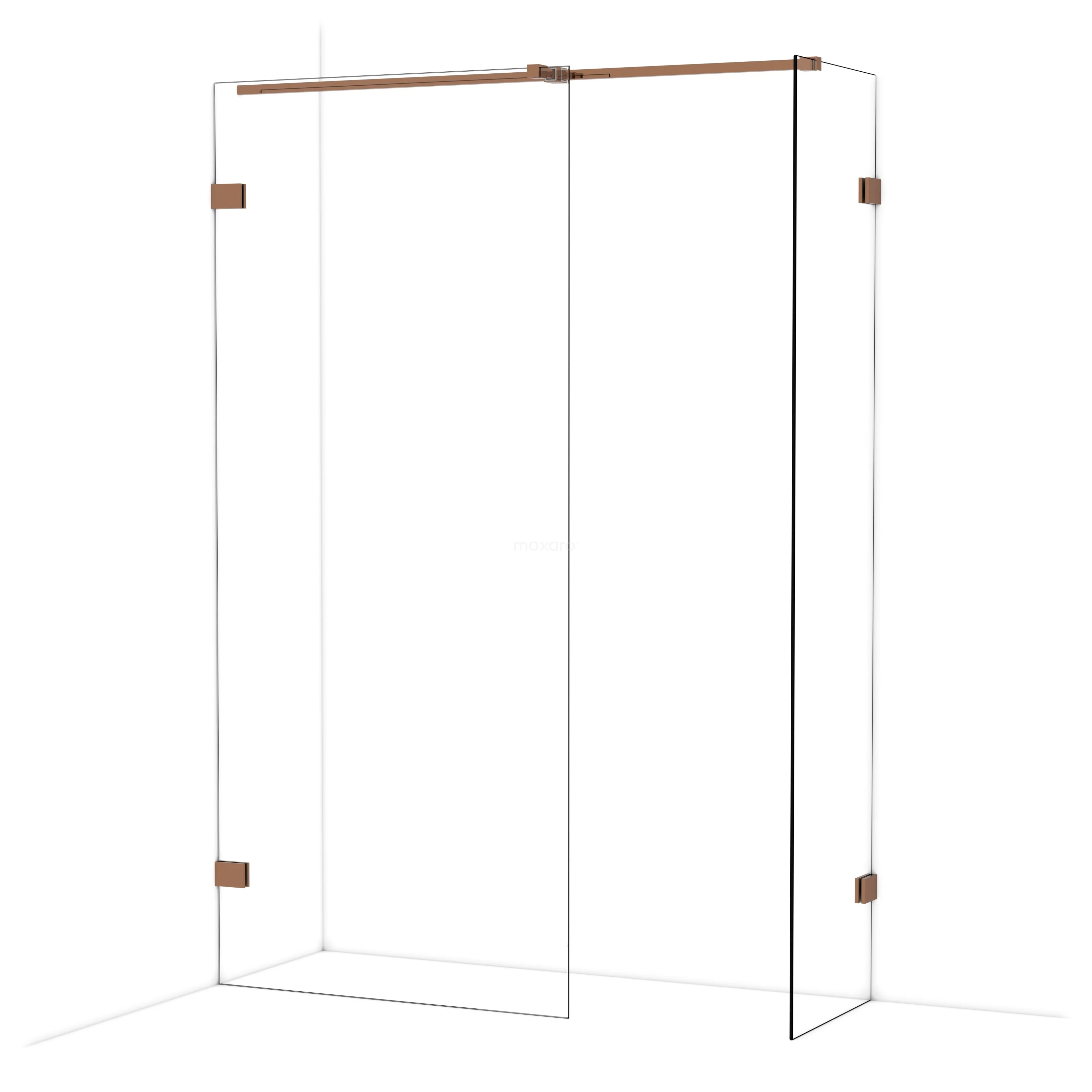 Diamond Inloopdouche | 90x50 cm Glanzend koper Helder glas 2 vaste wanden