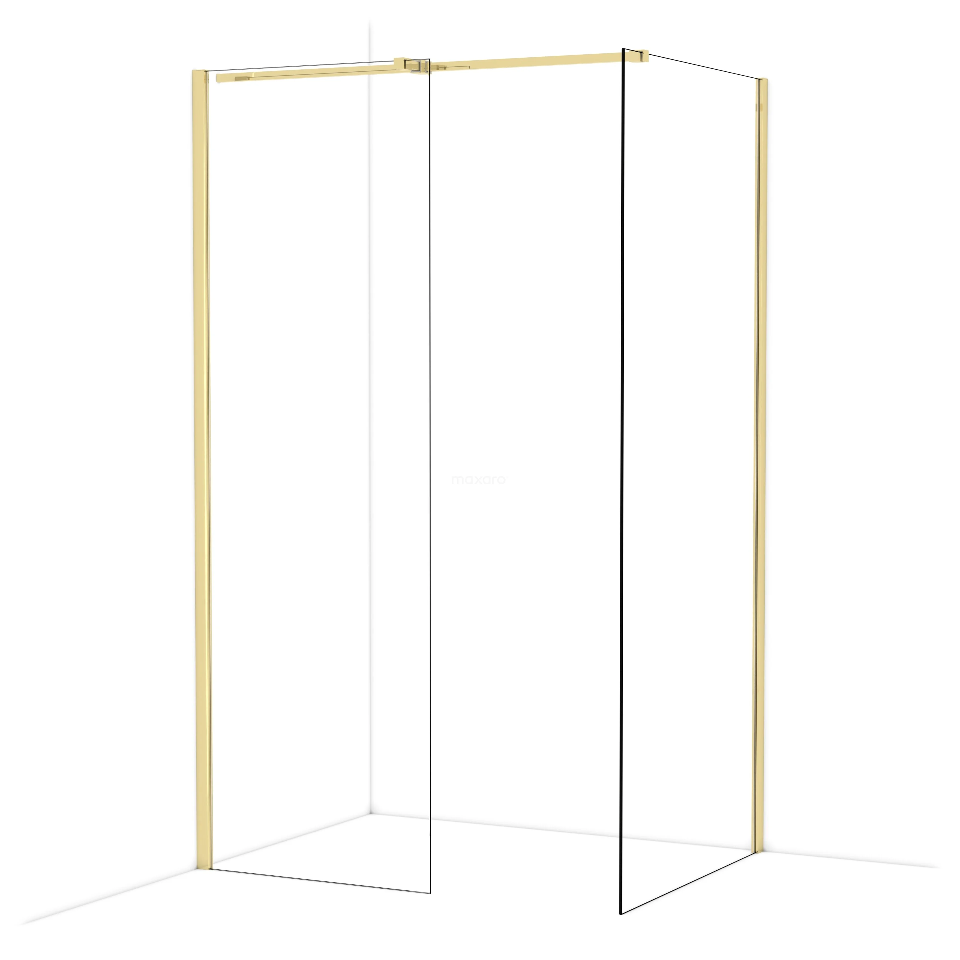 Diamond Inloopdouche | 90x70 cm Glanzend lichtgoud Helder glas 2 vaste wanden
