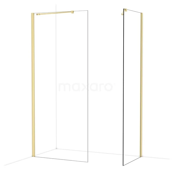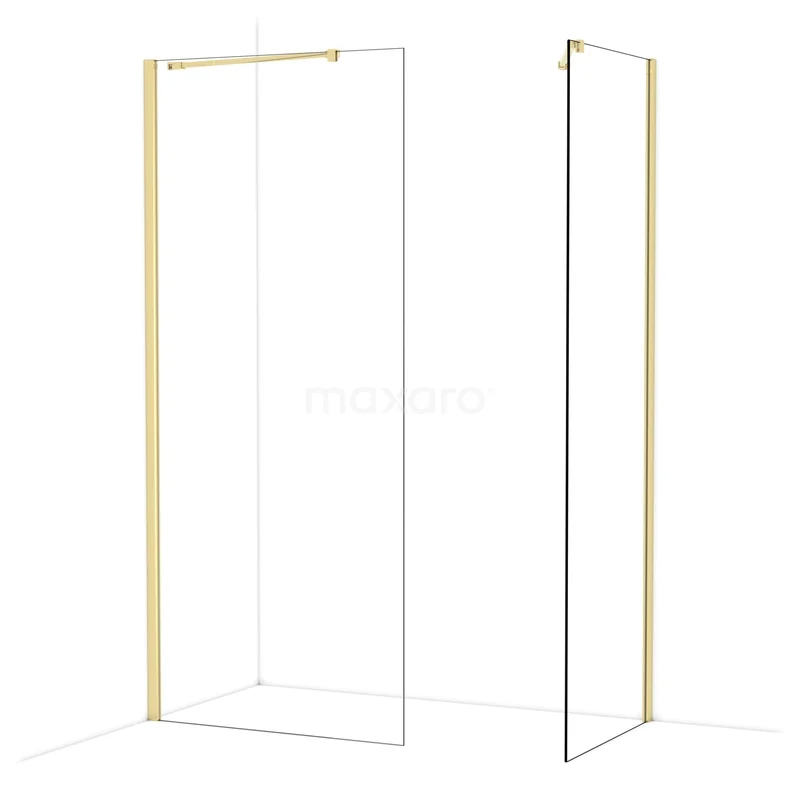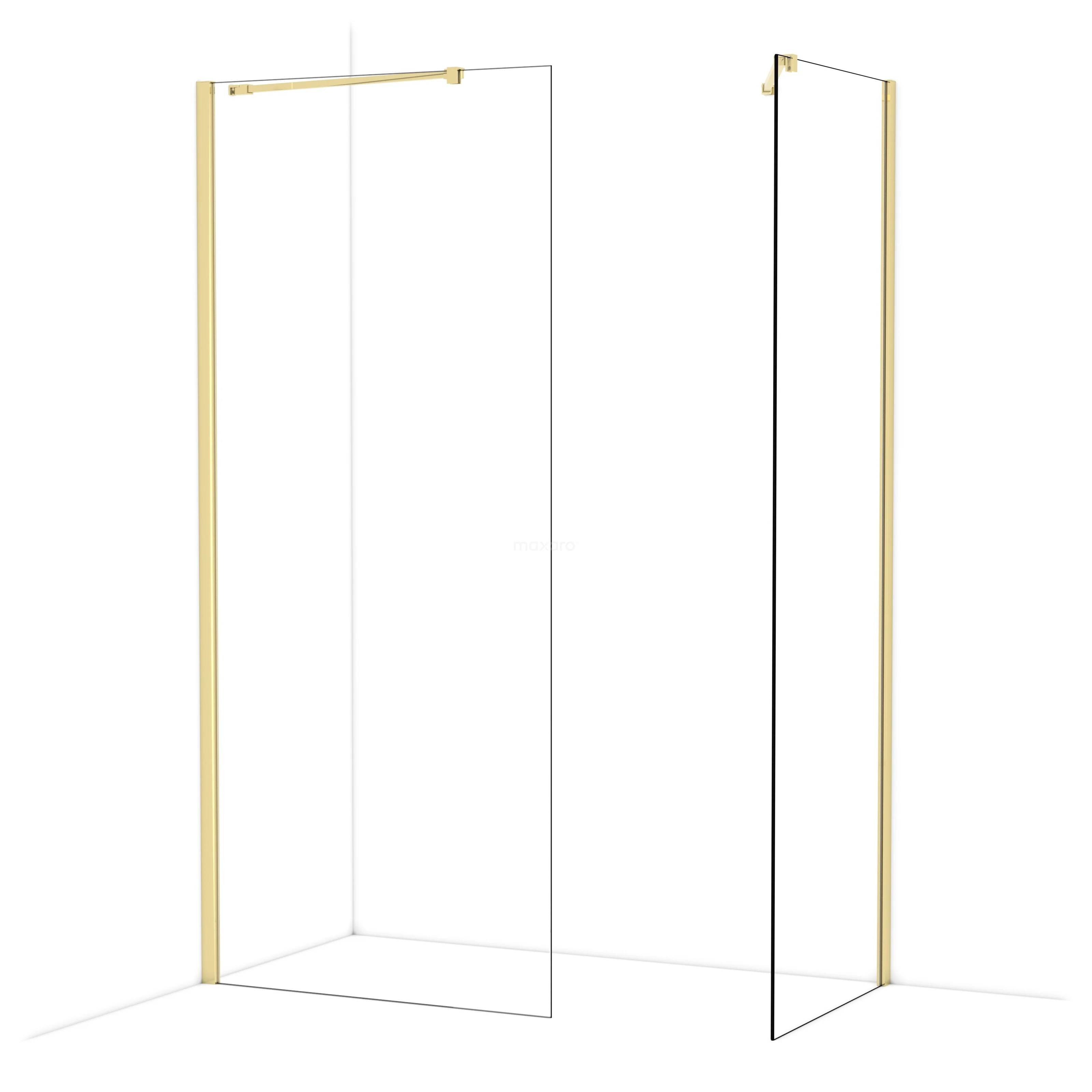 Diamond Inloopdouche | 90x70 cm Glanzend lichtgoud Helder glas 2 vaste wanden