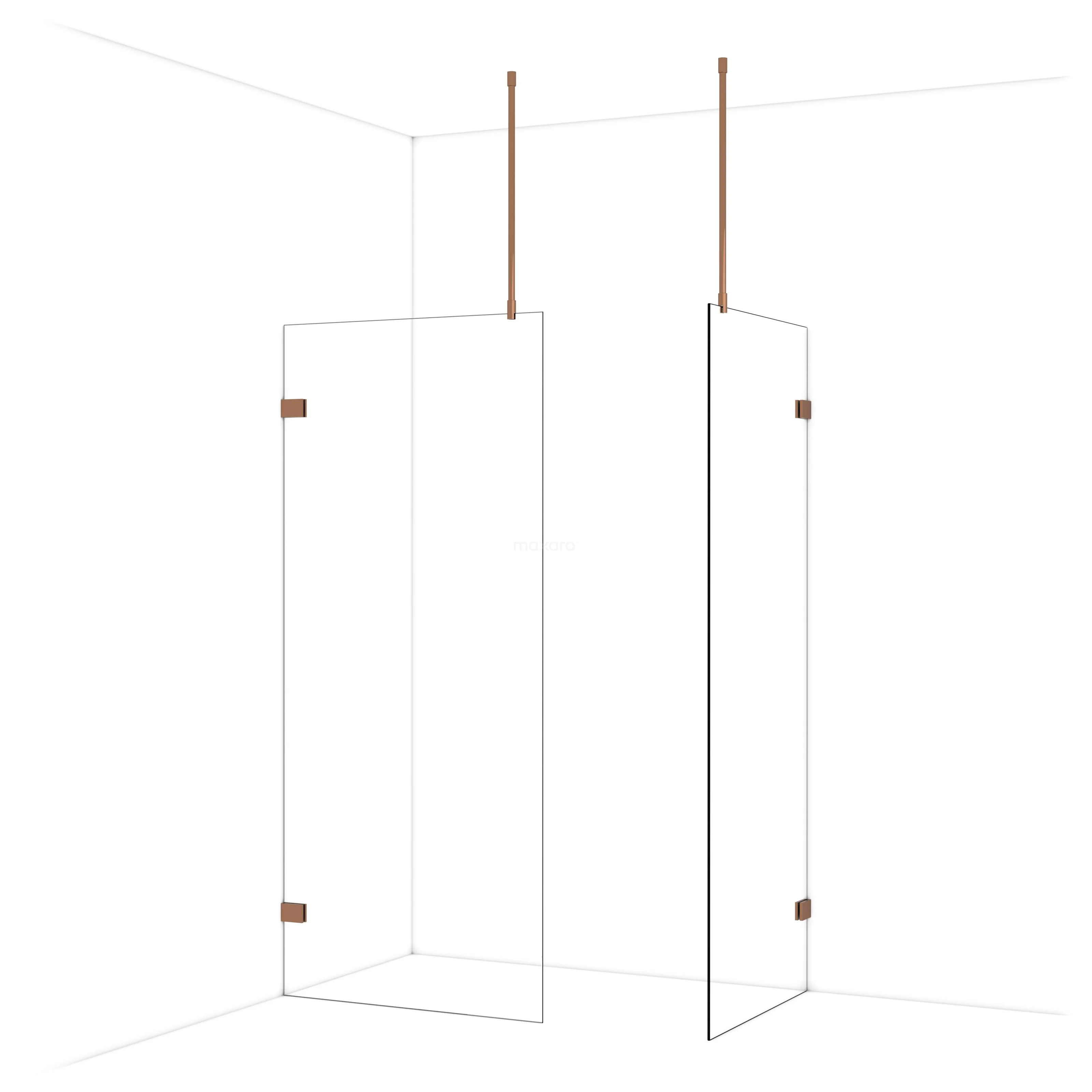 Diamond Inloopdouche | 90x80 cm Glanzend koper Helder glas 2 vaste wanden