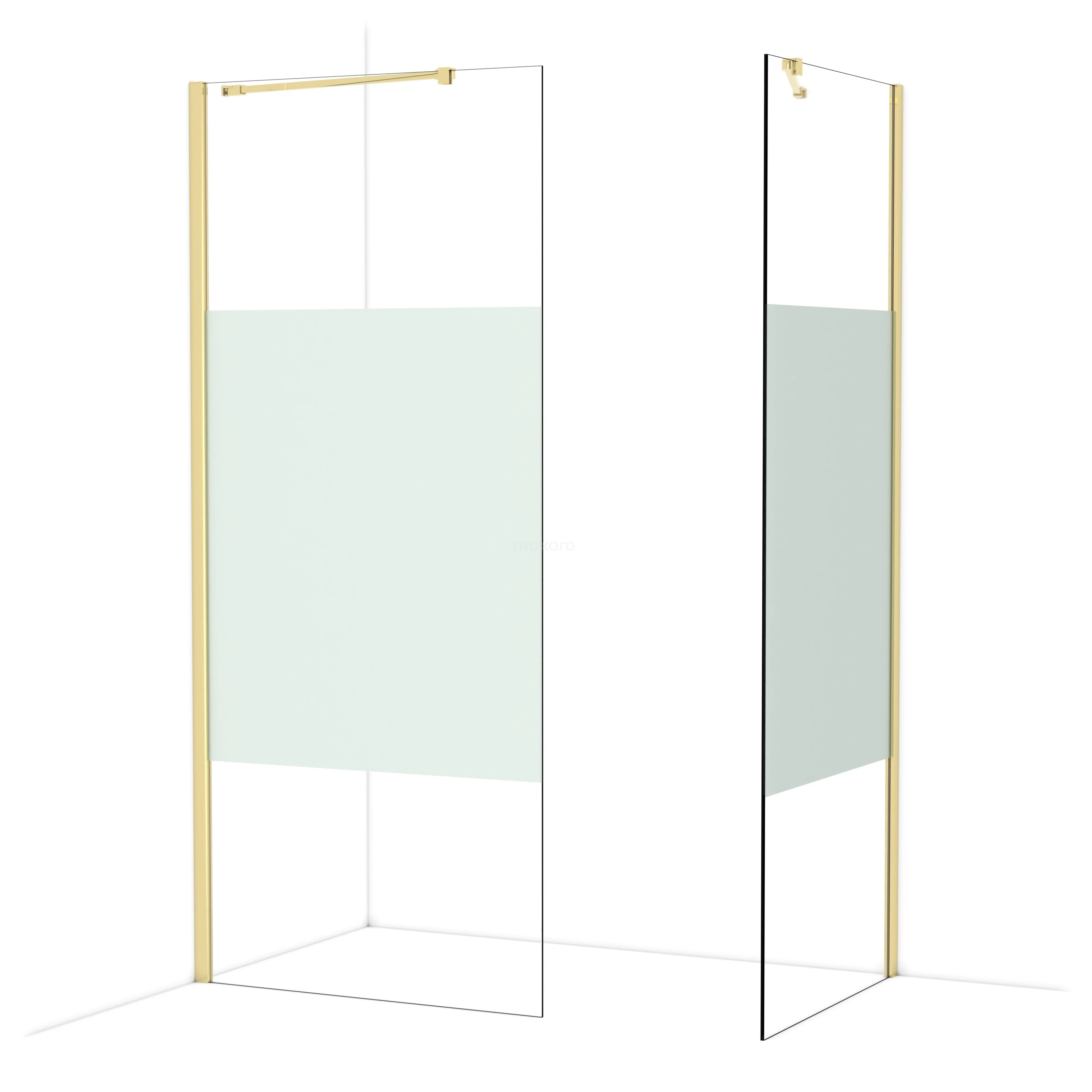 Diamond Inloopdouche | 90x80 cm Glanzend lichtgoud Helder met matte strook 2 vaste wanden