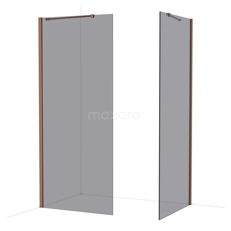 Diamond Inloopdouche | 90x90 cm Glanzend koper Rookglas 2 vaste wanden