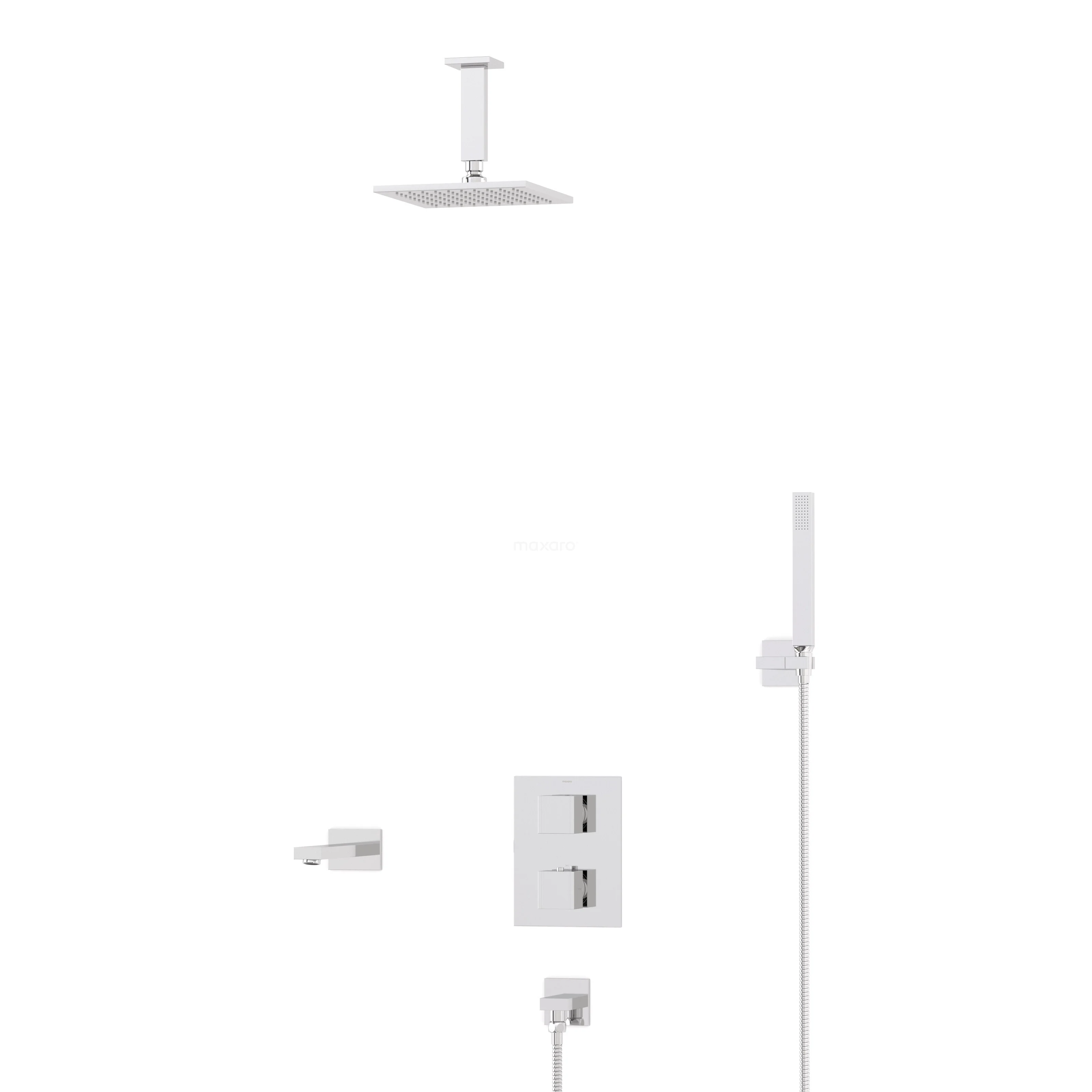Cubic Inbouw Badkraan met regendouche | Chroom Thermostatisch