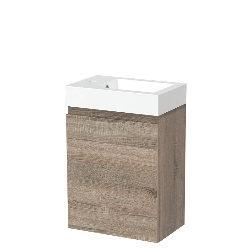 Stylish design Thanks to its beautiful design, the unit is an eye-catcher in the toilet area. The base cabinet has an Oak finish. This beautiful oak look creates a warm atmosphere in your bathroom interior. Furthermore, the unit is equipped with a flat front for a timeless touch. You will need to joint the handle yourself. It is available in different colours and shapes.