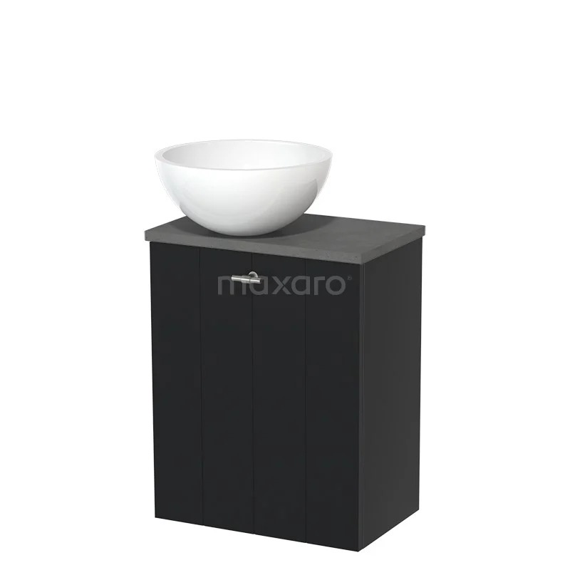 Toilet unit with countertop wash basin | 41 cm Matte black Lamel front High-gloss white Mineral marble worktop Dark grey concrete worktop