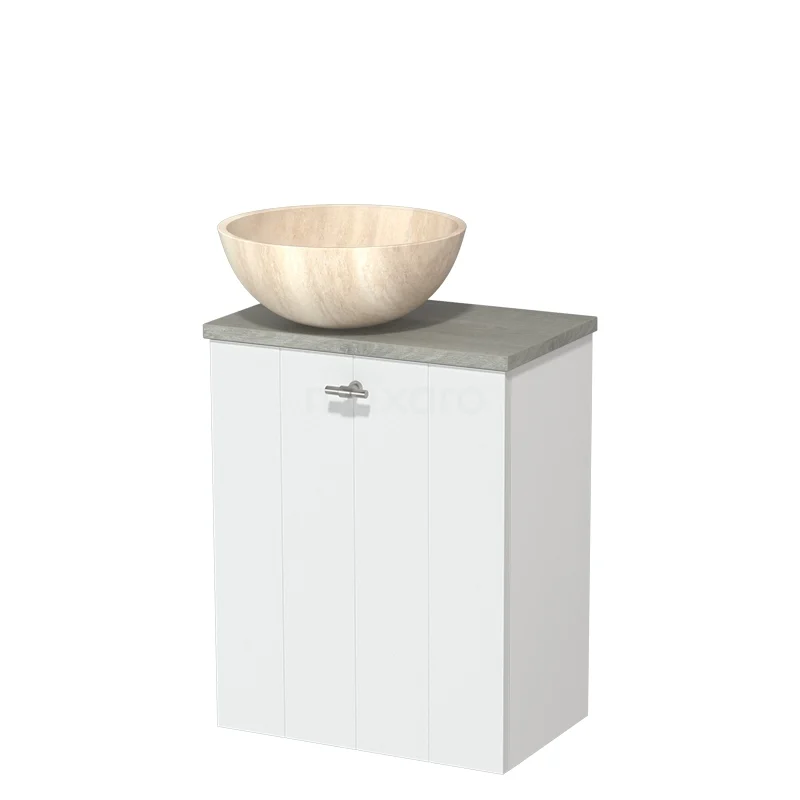 Toilet unit with countertop wash basin | 41 cm Matte white Lamel front Travertine Natural stone countertop wash basin Grey oak worktop