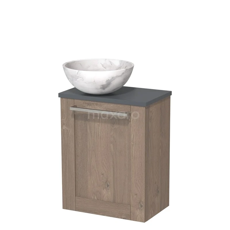 Toilet unit with countertop wash basin | 41 cm Mid brown oak Frame Front White marble Natural stone countertop wash basin Natural stone worktop Dark grey Fronts