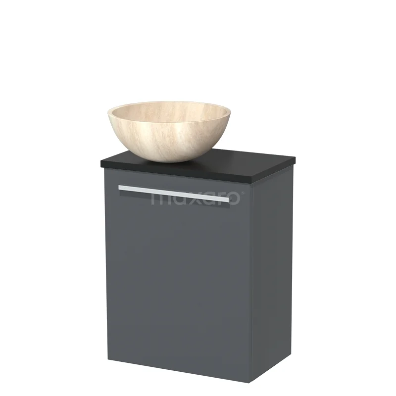 Toilet unit with wash basin | 41 cm Dark grey Flat front Travertine Natural stone countertop wash basin Matte black worktop
