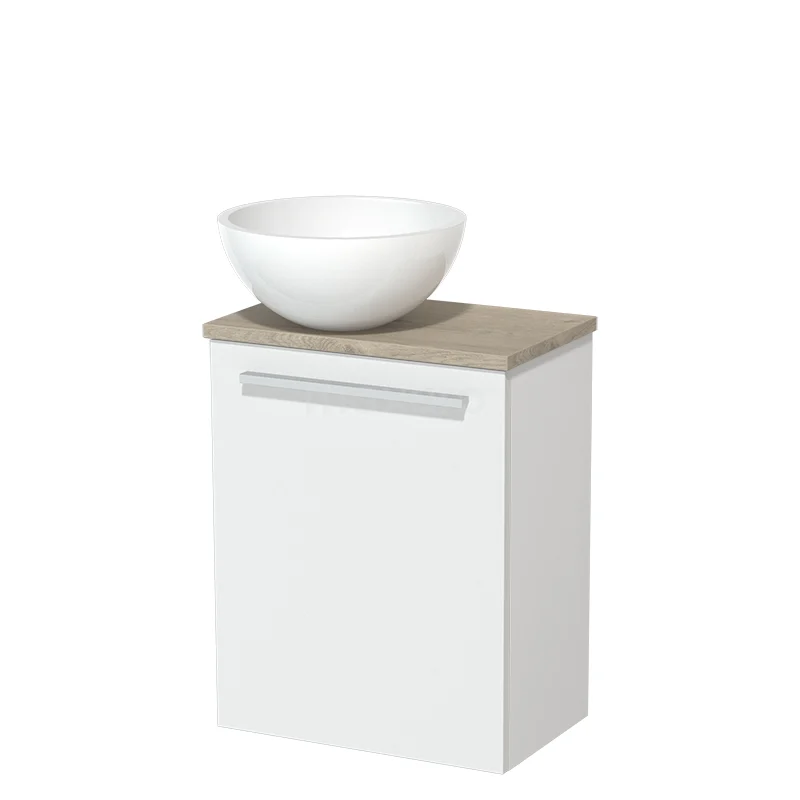 Toilet unit with wash basin | 41 cm Matte white Flat front High-gloss white Mineral marble basin Light grey oak worktop