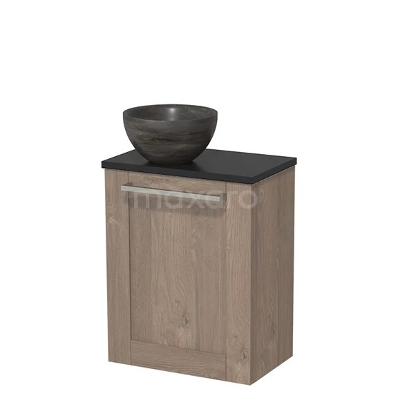 Toilet unit with wash basin | 41 cm Mid brown oak Front Blue stone Natural stone Countertop wash basin Matte black worktop