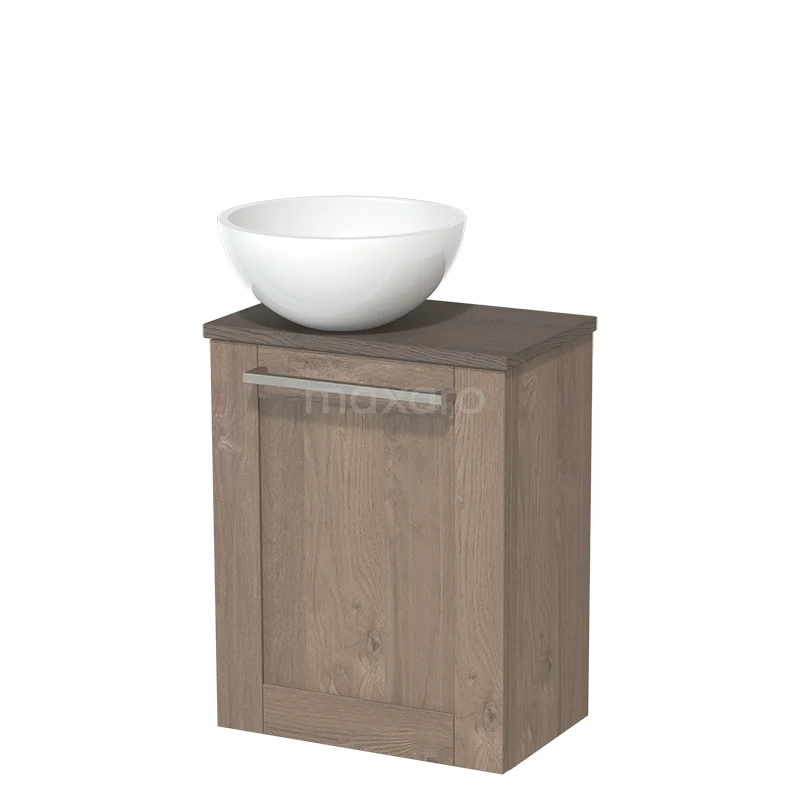 Stylish design Thanks to its beautiful design, the unit is an eye-catcher in the toilet area. The base cabinet has a grey oak finish with a grey oak basin worktop.