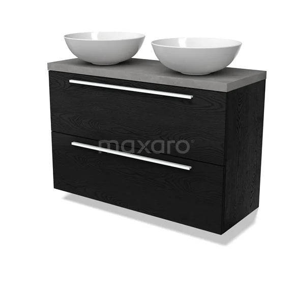 Modulo Plato Slim Vanity units for countertop basin | 100 cm Black oak Flat front Light grey concrete worktop 2 Stacked drawers