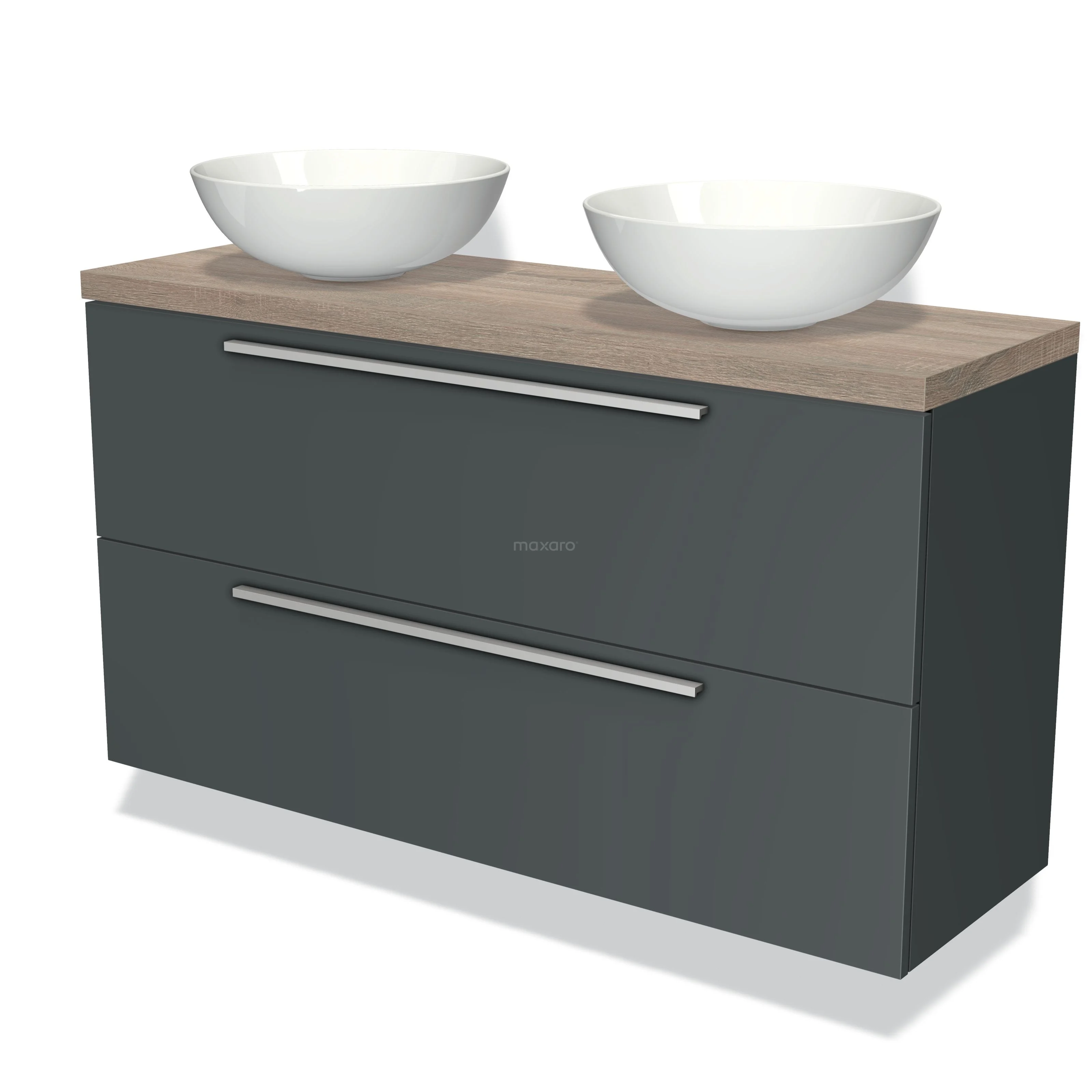 Modulo Plato Slim Vanity units for countertop basin | 120 cm Dark grey Flat front Oak worktop 2 Stacked drawers