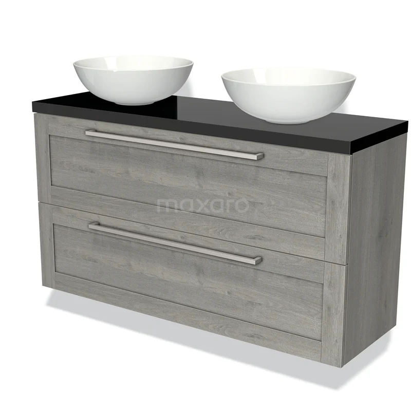 Modulo Plato Slim Vanity units for countertop basin | 120 cm Grey oak Frame front High-gloss black worktop 2 Stacked drawers