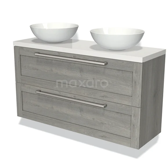 Modulo Plato Slim Vanity units for countertop basin | 120 cm Grey oak Frame front High-gloss white worktop 2 Stacked drawers