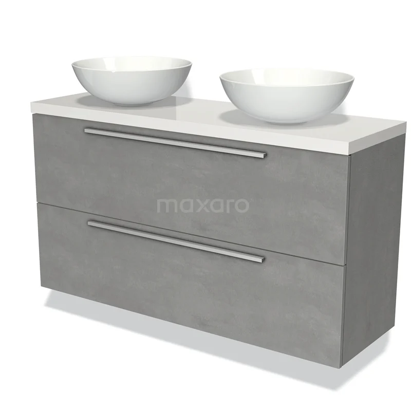 Modulo Plato Slim Vanity units for countertop basin | 120 cm Light grey concrete Flat front High-gloss white worktop 2 Stacked drawers