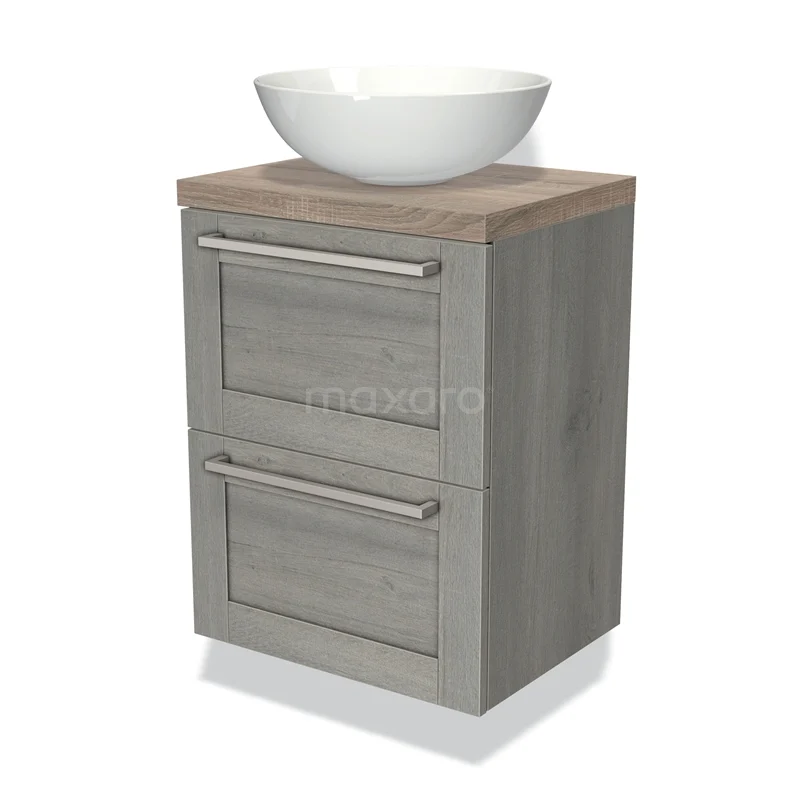 Modulo Plato Slim Vanity units for countertop basin | 50 cm Grey oak Frame front Oak worktop 2 Stacked drawers