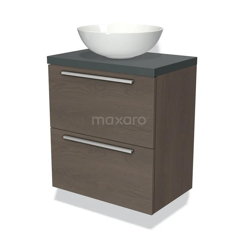 Modulo Plato Slim Vanity units for countertop basin | 60 cm Dark brown oak Flat front Dark grey worktop 2 Stacked drawers