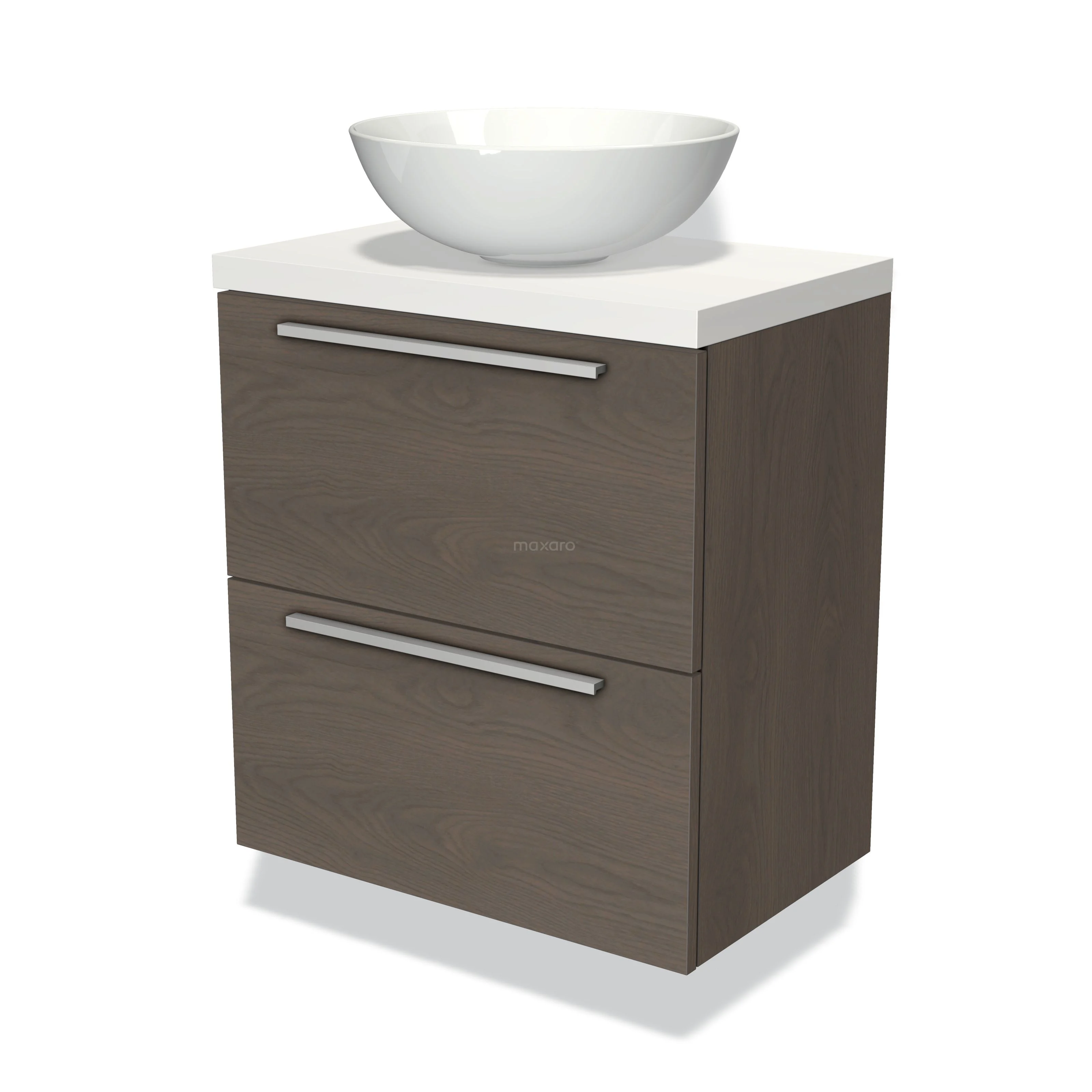 Modulo Plato Slim Vanity units for countertop basin | 60 cm Dark brown oak Flat front Matte white worktop 2 Stacked drawers