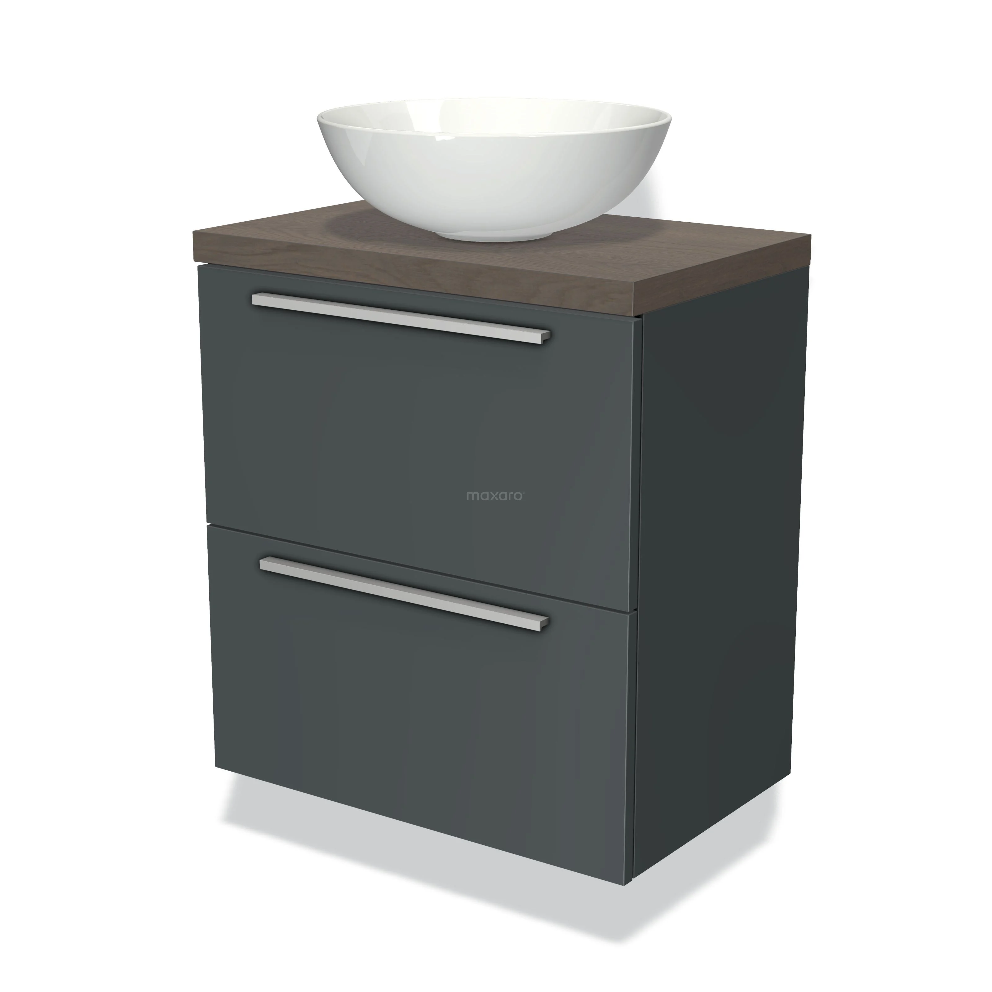 Modulo Plato Slim Vanity units for countertop basin | 60 cm Dark grey Flat front Dark brown oak worktop 2 Stacked drawers