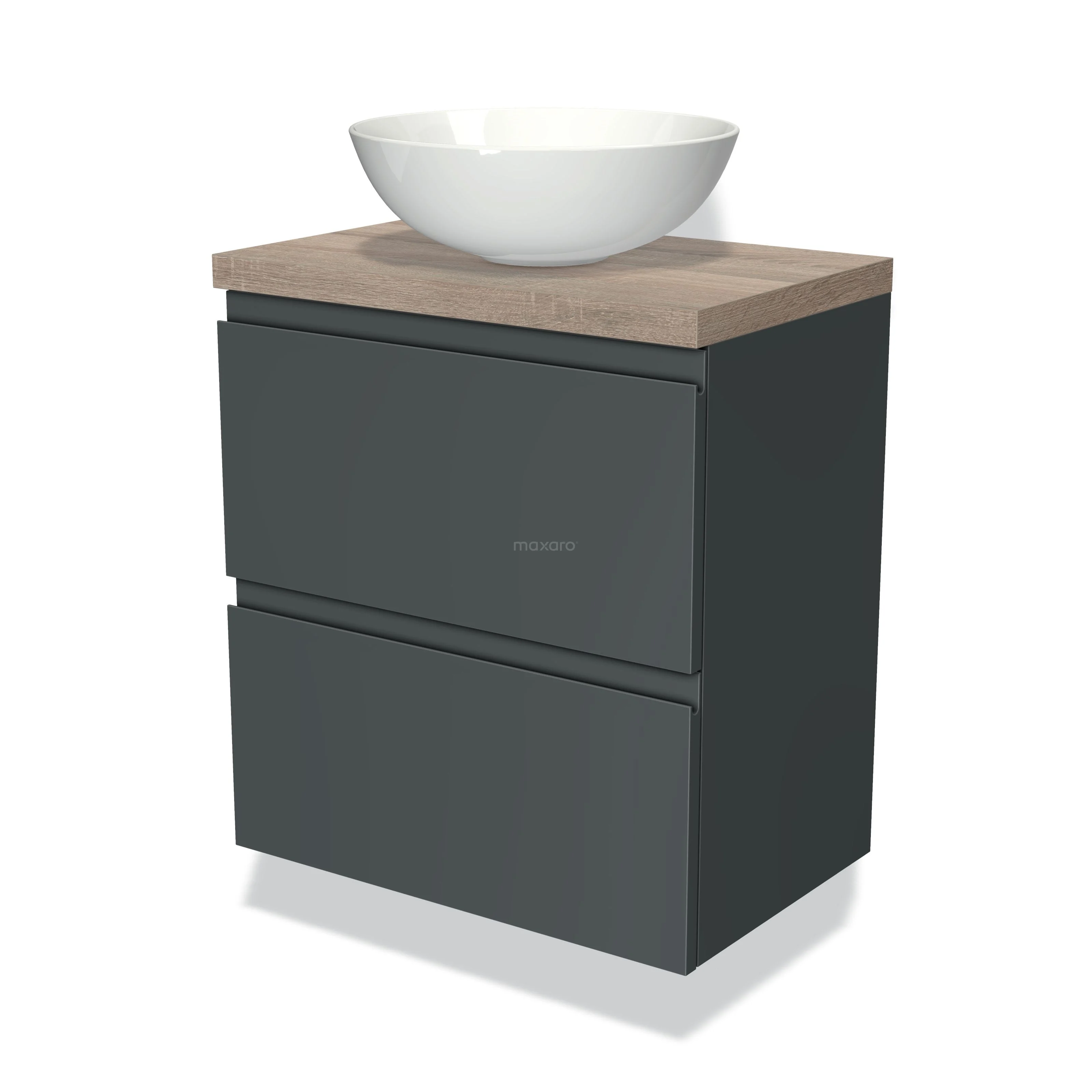 Modulo Plato Slim Vanity units for countertop basin | 60 cm Dark grey Handle-less front Oak worktop 2 Stacked drawers