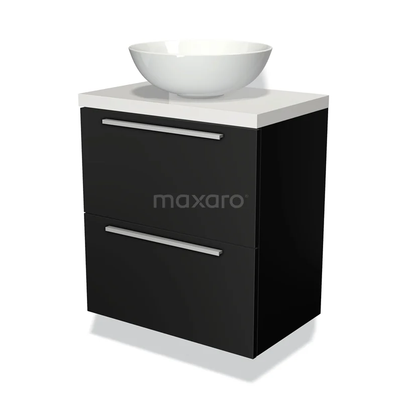 Modulo Plato Slim Vanity units for countertop basin | 60 cm Matte black Flat front High-gloss white worktop 2 Stacked drawers