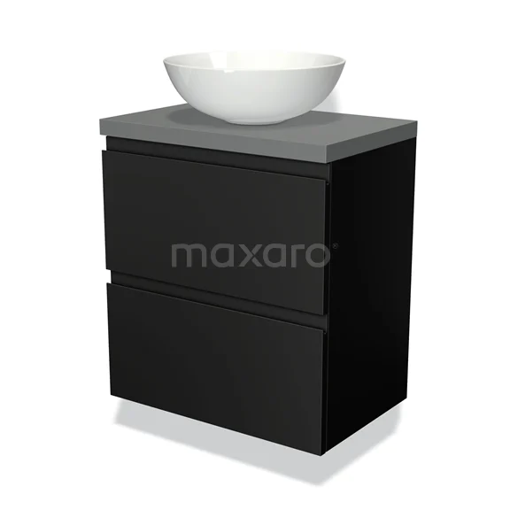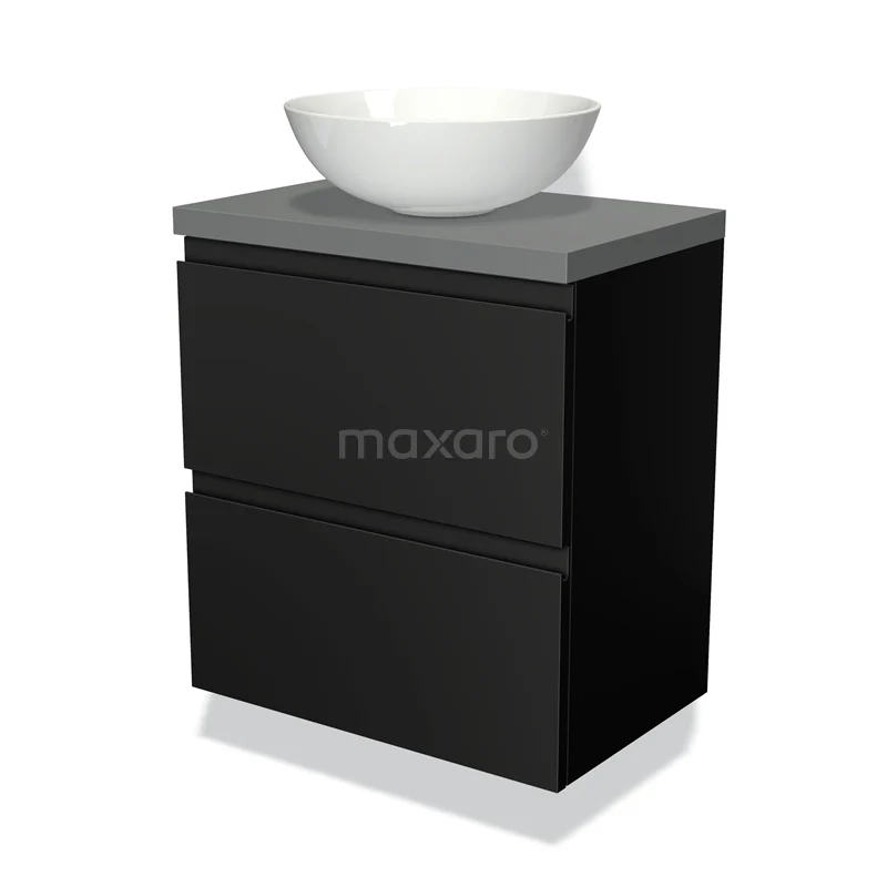 Modulo Plato Slim Vanity units for countertop basin | 60 cm Matte black Handle-less front Mid grey worktop 2 Stacked drawers