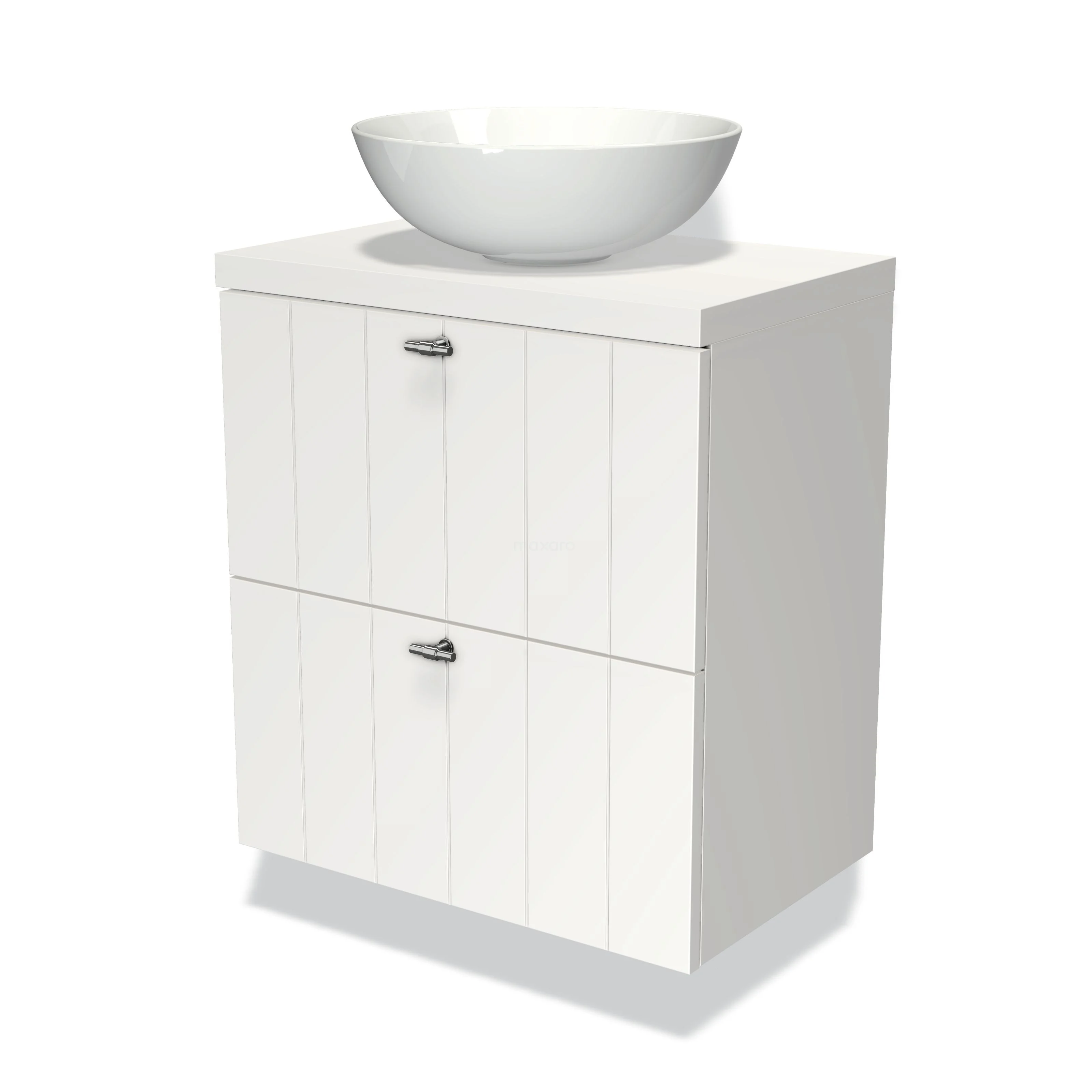 Modulo Plato Slim Vanity units for countertop basin | 60 cm Matte white Slat front Matte white worktop 2 Stacked drawers