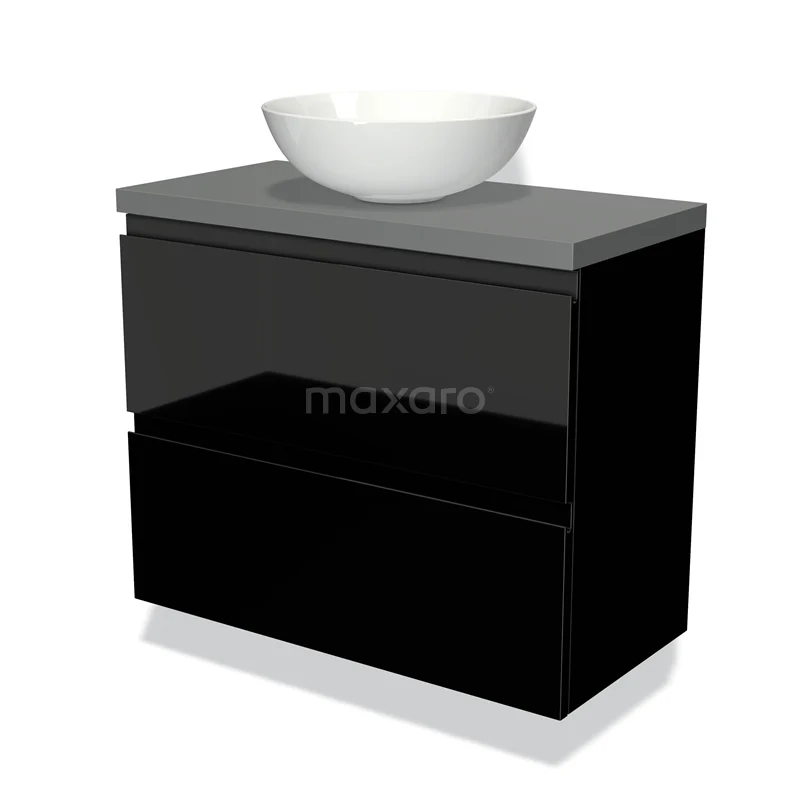 Modulo Plato Slim Vanity units for countertop basin | 80 cm High-gloss black Handle-less front Mid grey worktop 2 Stacked drawers