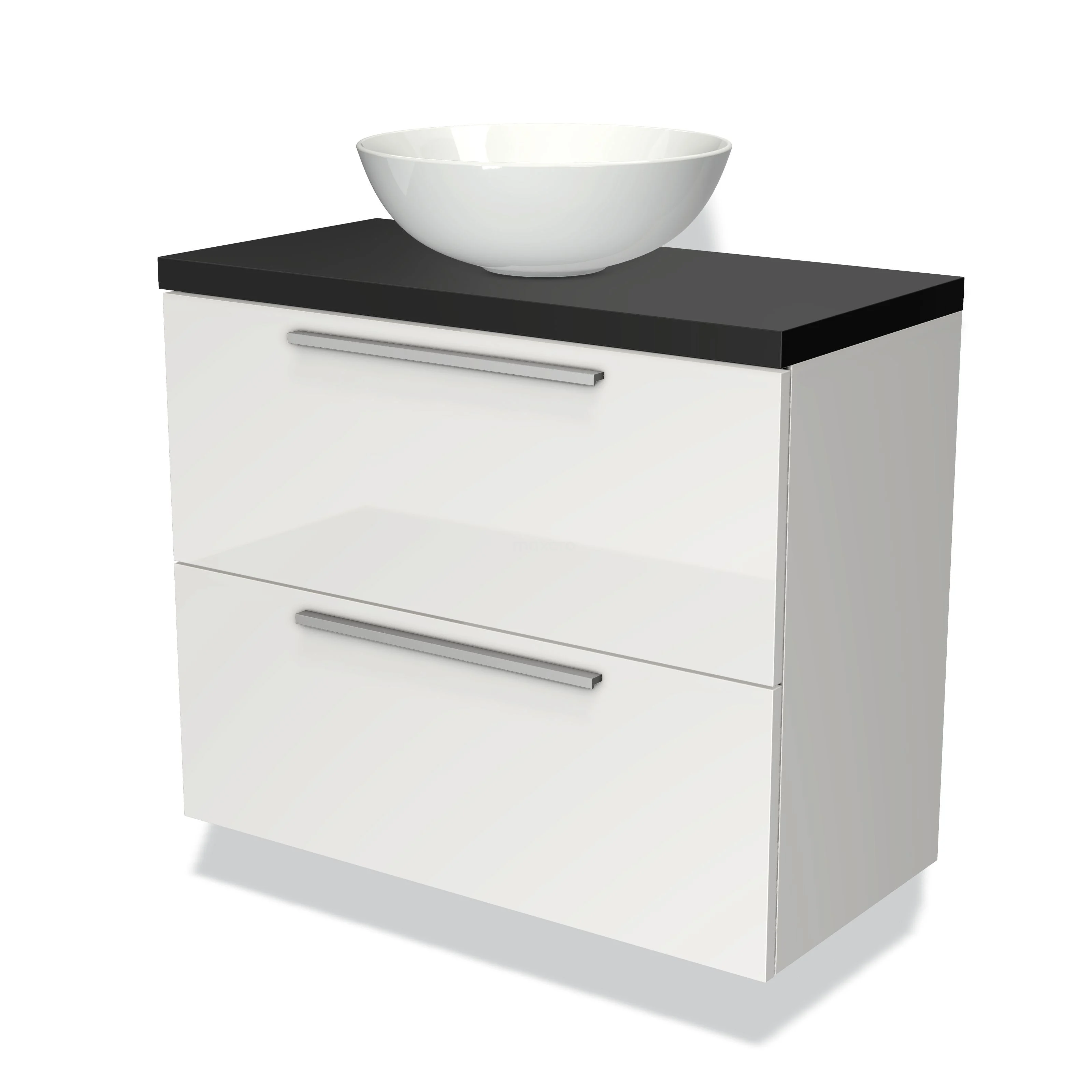 Modulo Plato Slim Vanity units for countertop basin | 80 cm High-gloss white Flat front Matte black worktop 2 Stacked drawers