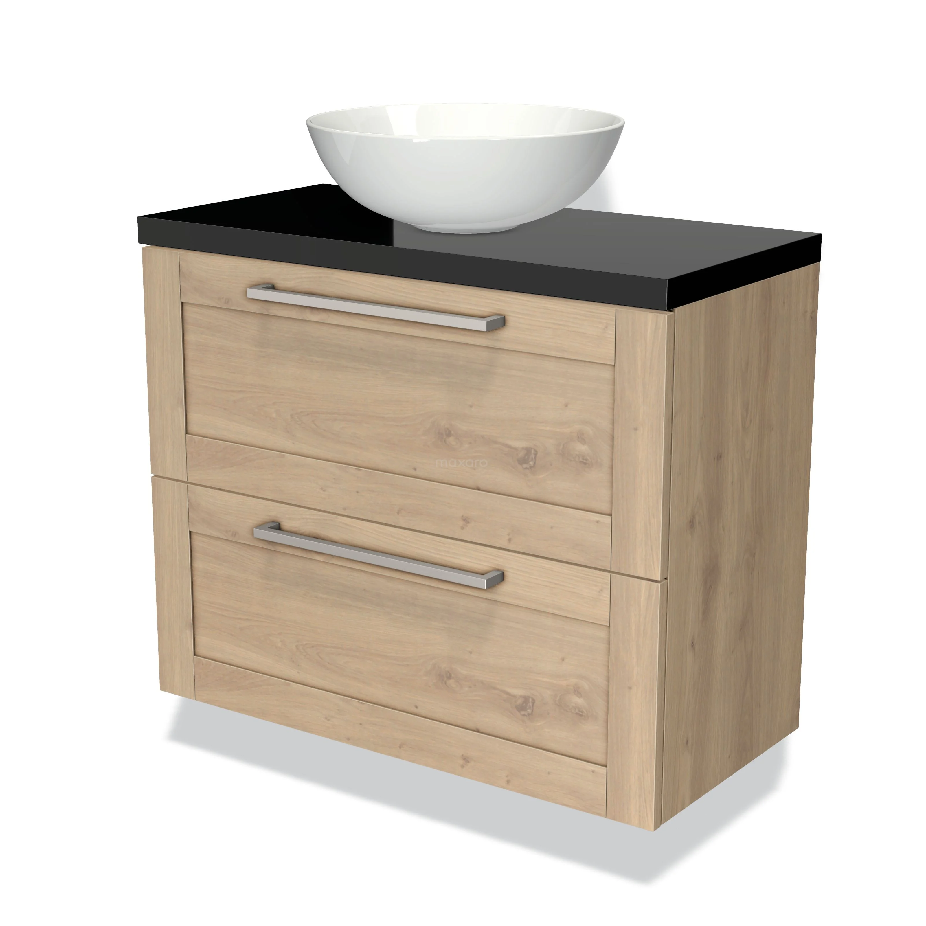 Modulo Plato Slim Vanity units for countertop basin | 80 cm Light brown oak Frame front High-gloss black worktop 2 Stacked drawers