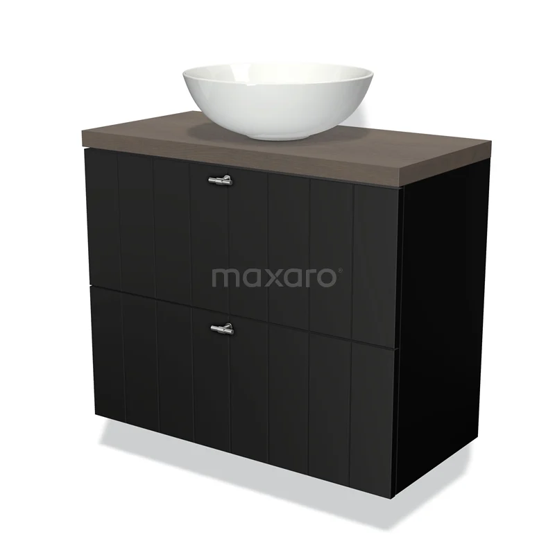 Modulo Plato Slim Vanity units for countertop basin | 80 cm Matte black Slat front Dark brown oak worktop 2 Stacked drawers