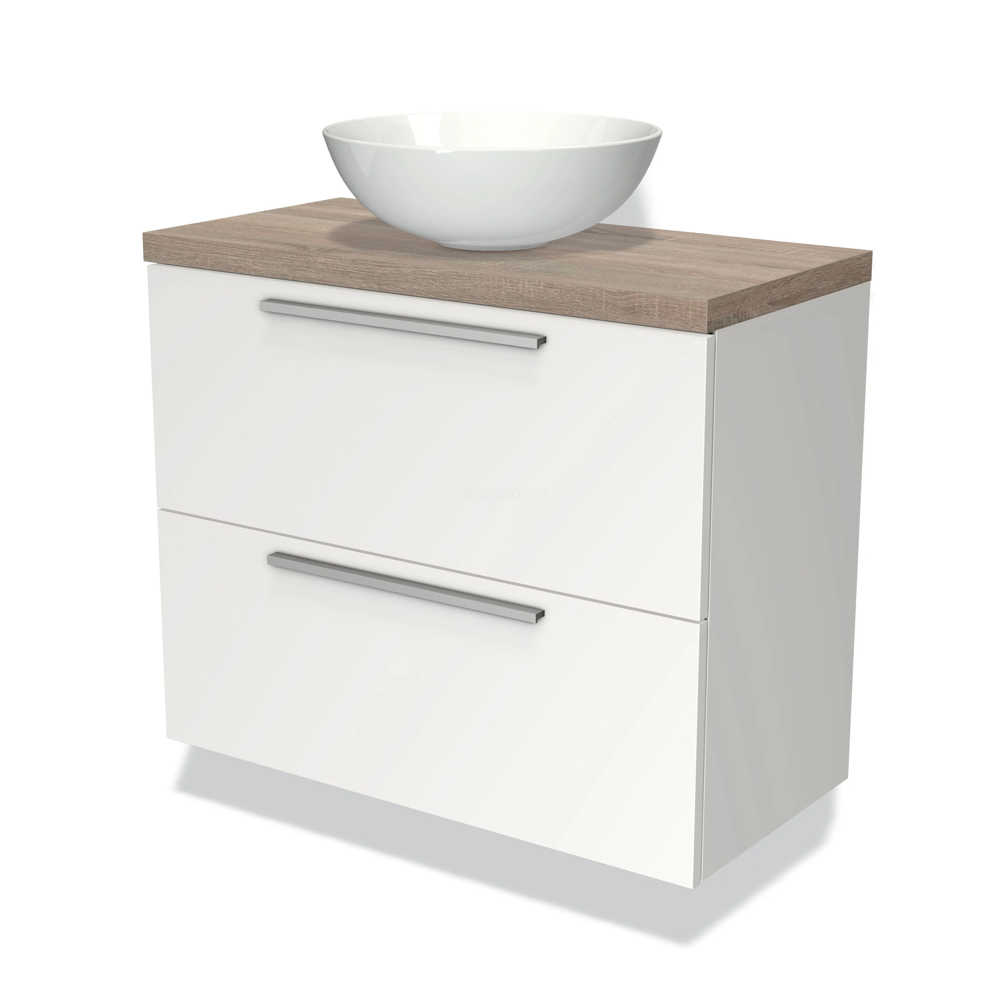 Modulo Plato Slim Vanity units for countertop basin | 80 cm Matte white Flat front Oak worktop 2 Stacked drawers