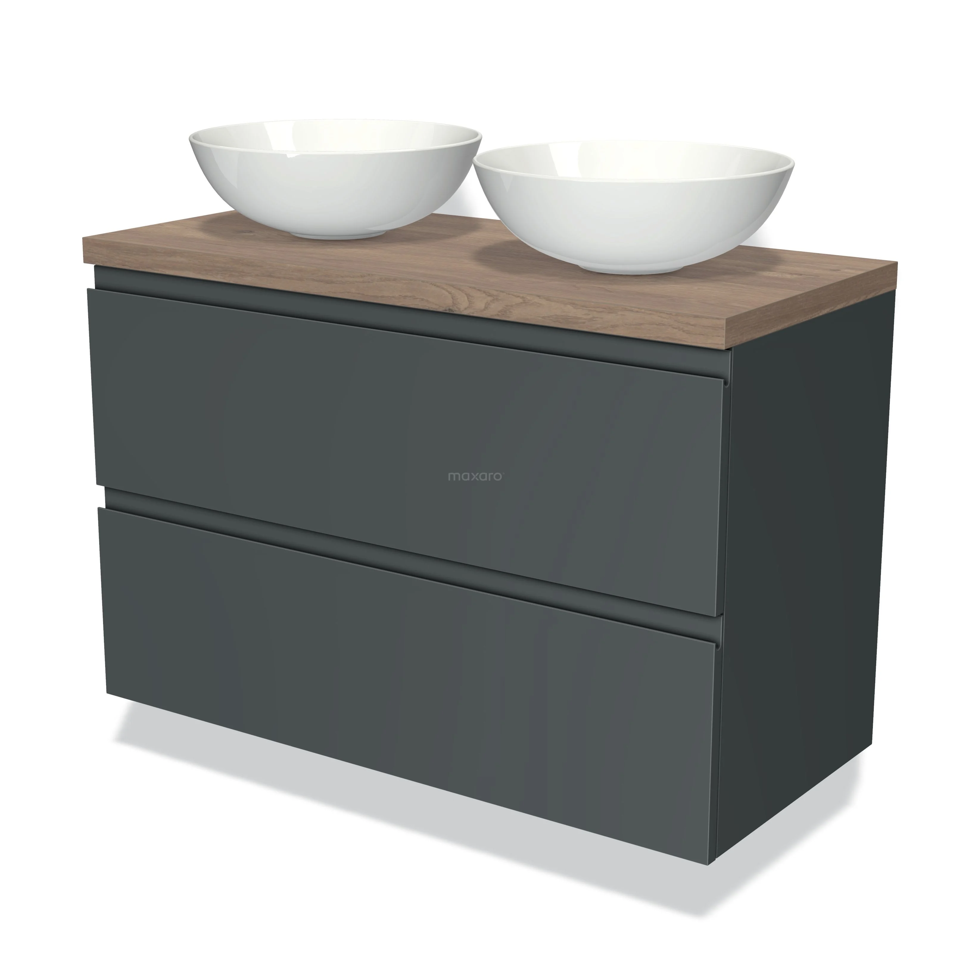 Modulo Plato Vanity units for countertop basin | 100 cm Dark grey Handle-less front Mid brown oak worktop 2 Stacked drawers