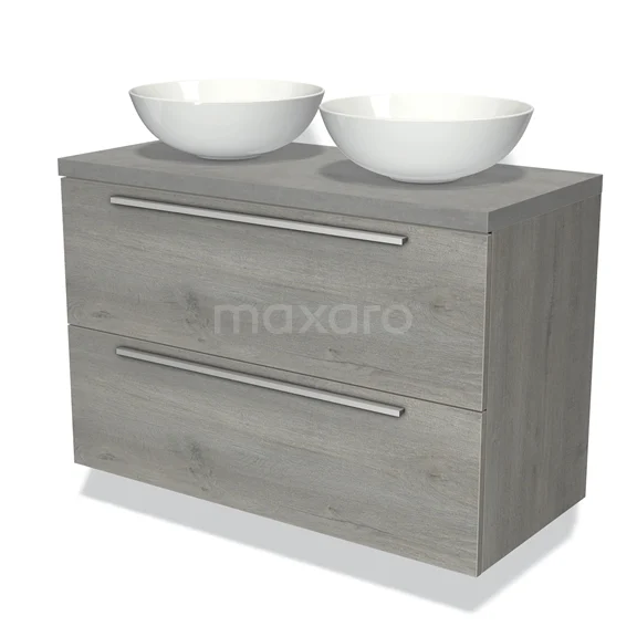 Modulo Plato Vanity units for countertop basin | 100 cm Grey oak Flat front Light grey concrete worktop 2 Stacked drawers