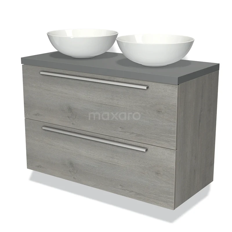 Modulo Plato Vanity units for countertop basin | 100 cm Grey oak Flat front Mid grey worktop 2 Stacked drawers
